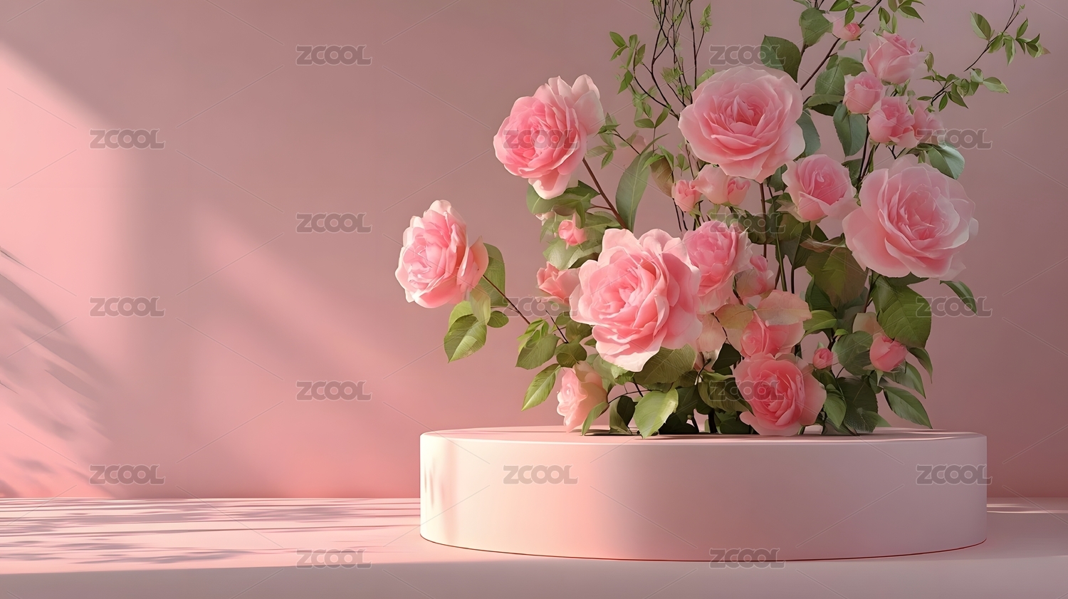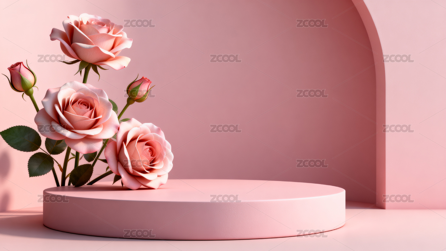 橙色,讲台,玫瑰,粉红,几何背景,金属质感,光滑,美丽,简洁