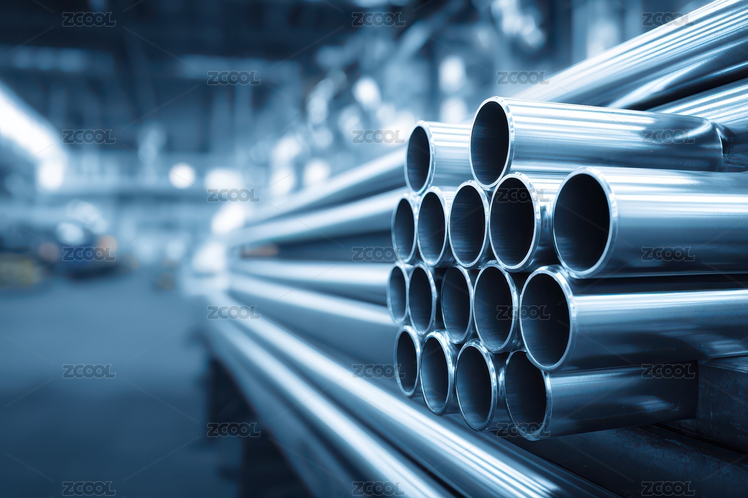 不锈钢管堆叠的工业场景