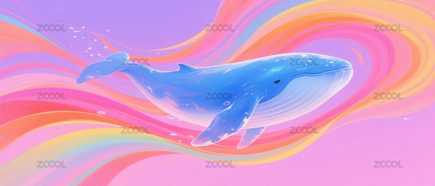 现代抽象艺术风格鲸鱼彩色线条渐变背景