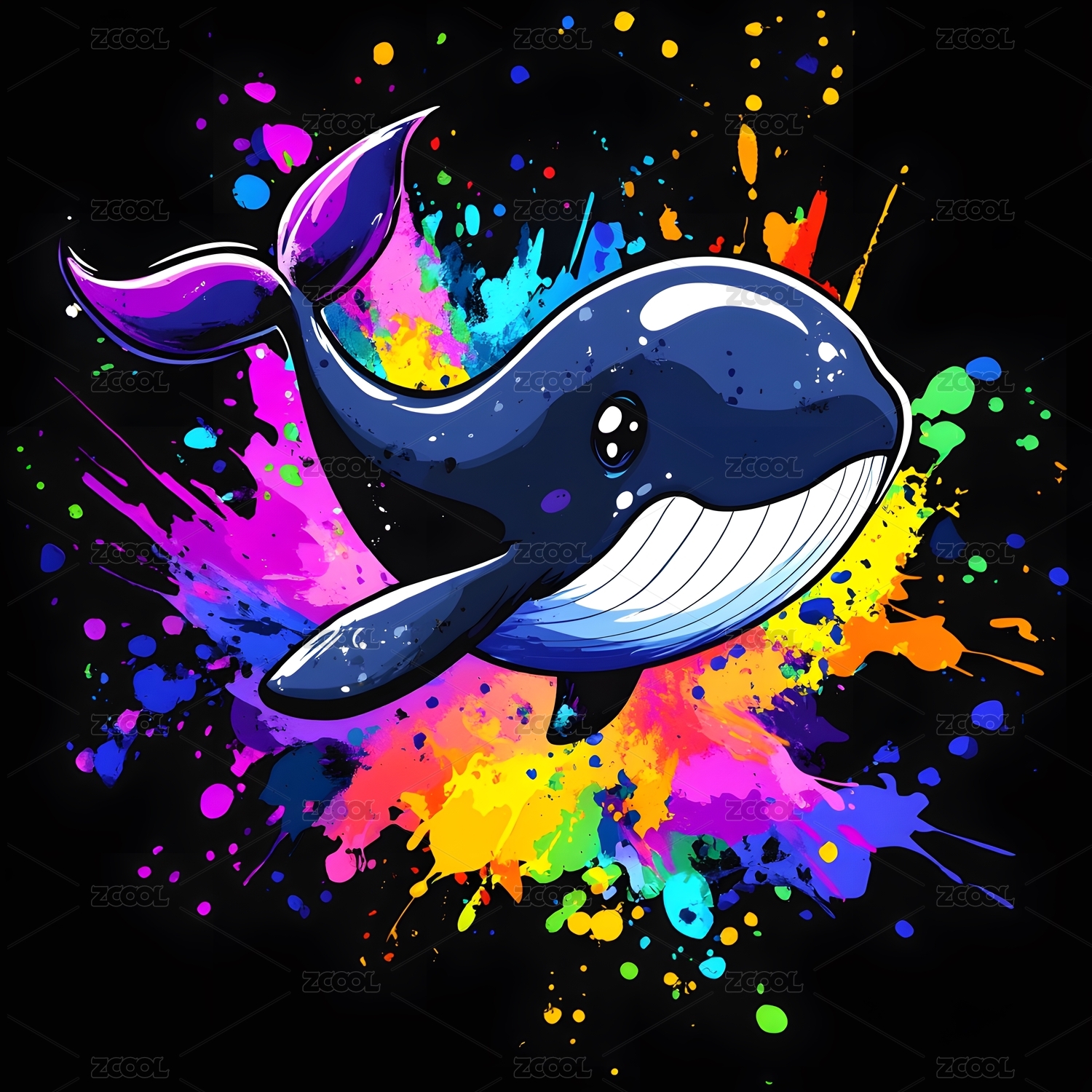 漂亮的高级金沙油漆质感艺术感鲸鱼插画