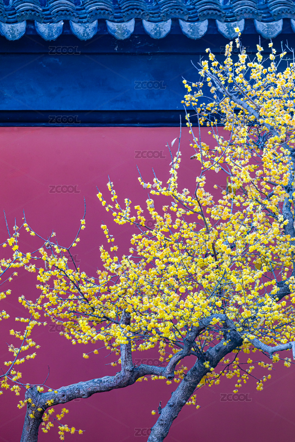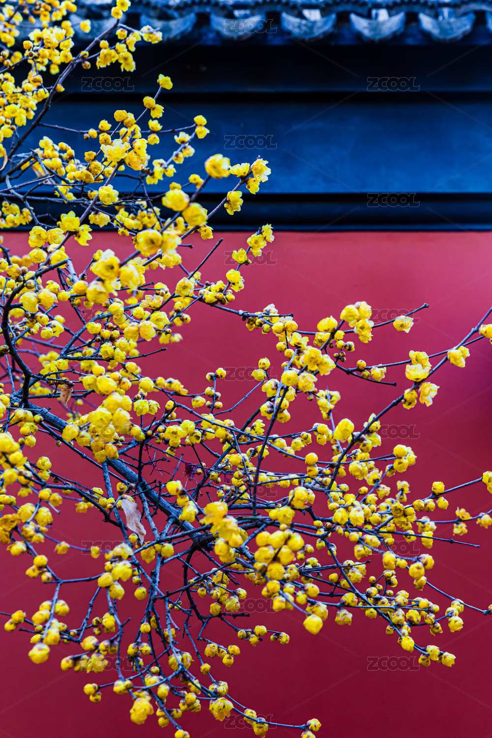 中国江苏苏州黎里古镇昭灵观冬天腊梅开
