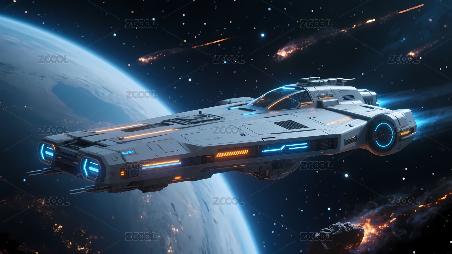 科幻太空船遨游宇宙