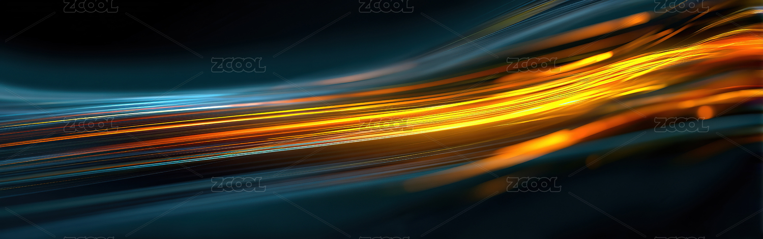 蓝橙流光曲线抽象背景图