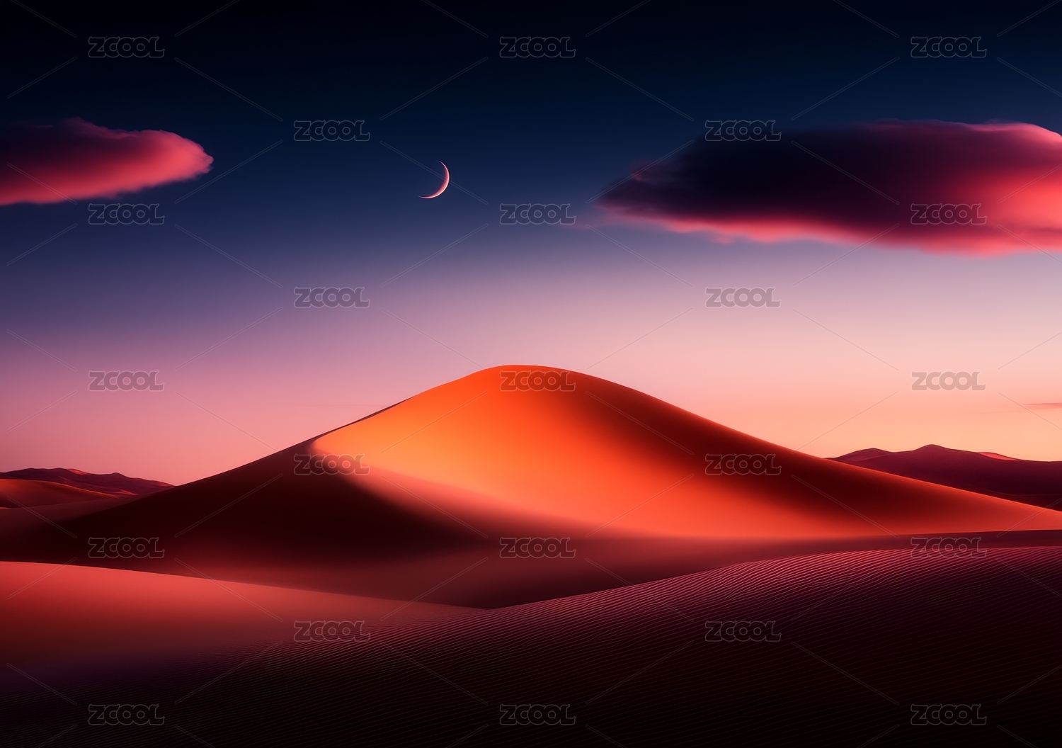 自然,景象,沙漠,月牙,弯月,新月,星空,夜景,沙丘,山丘