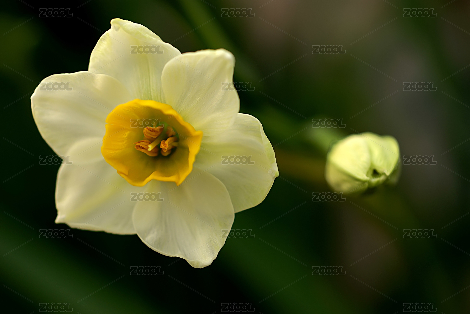 盛开的水仙花和花苞