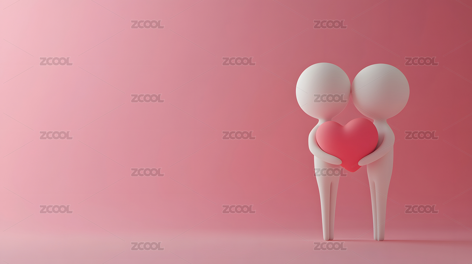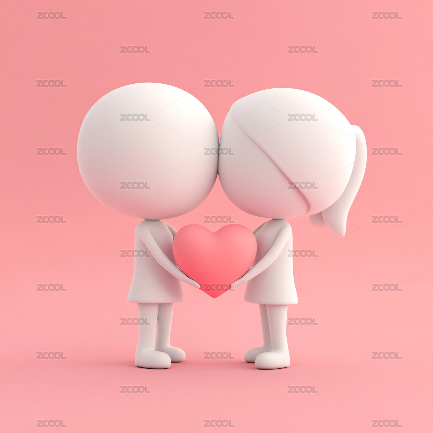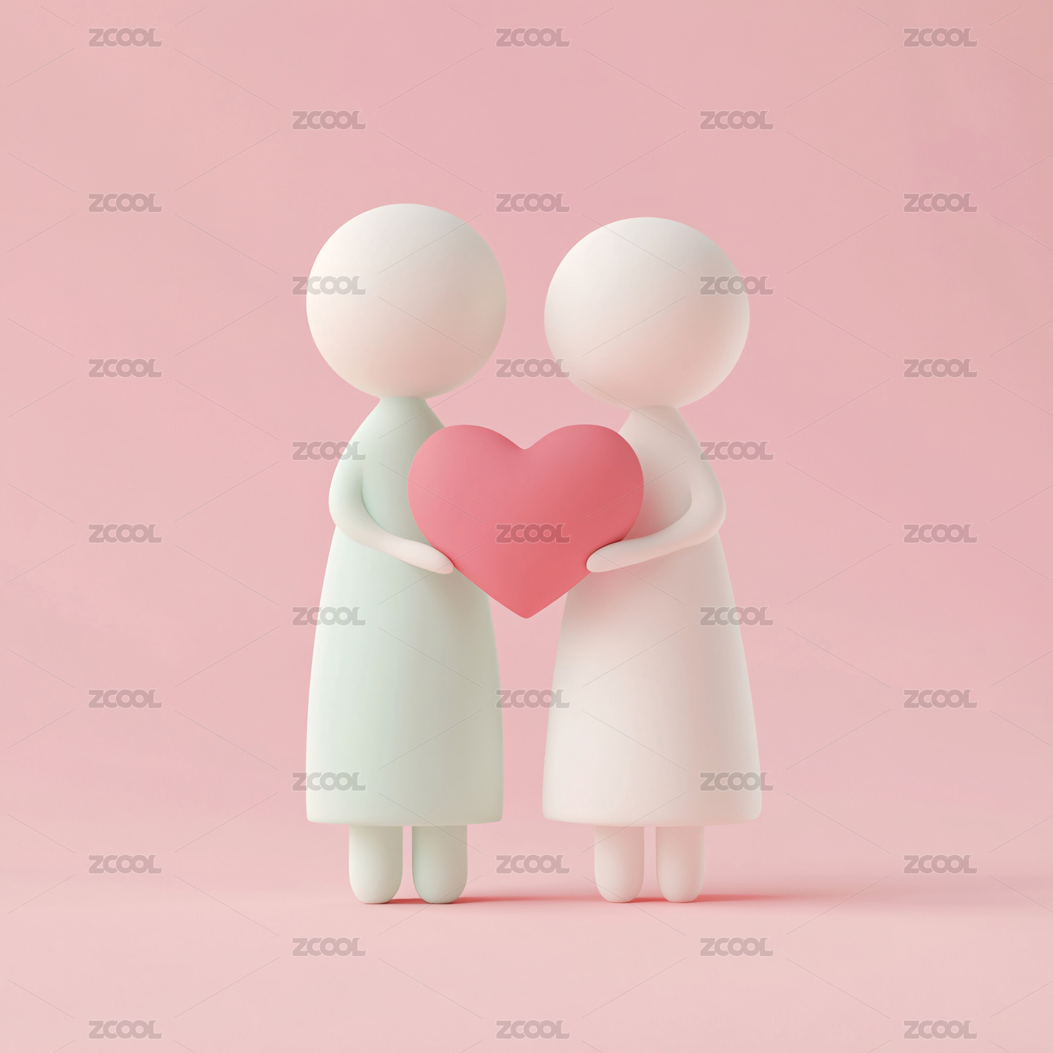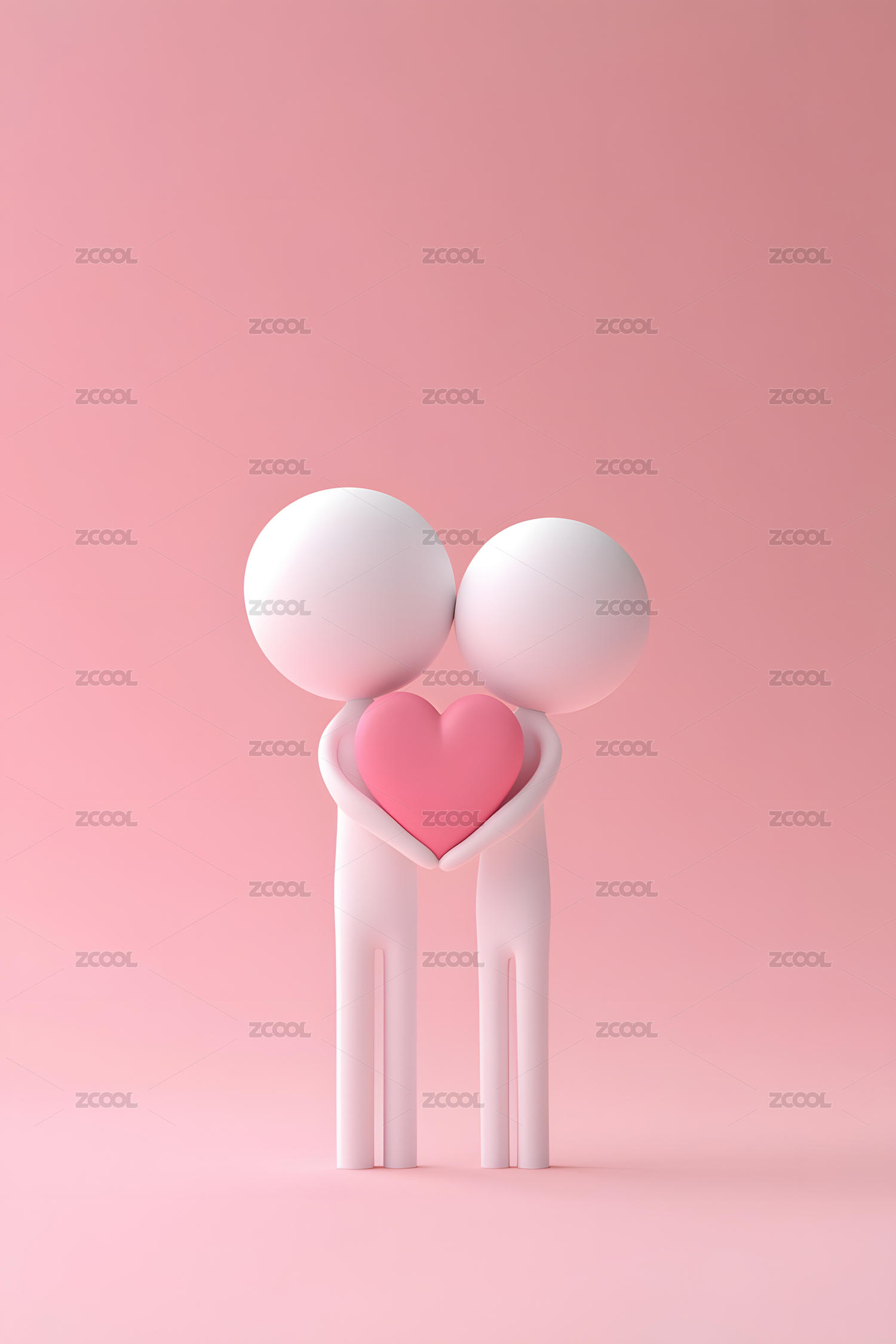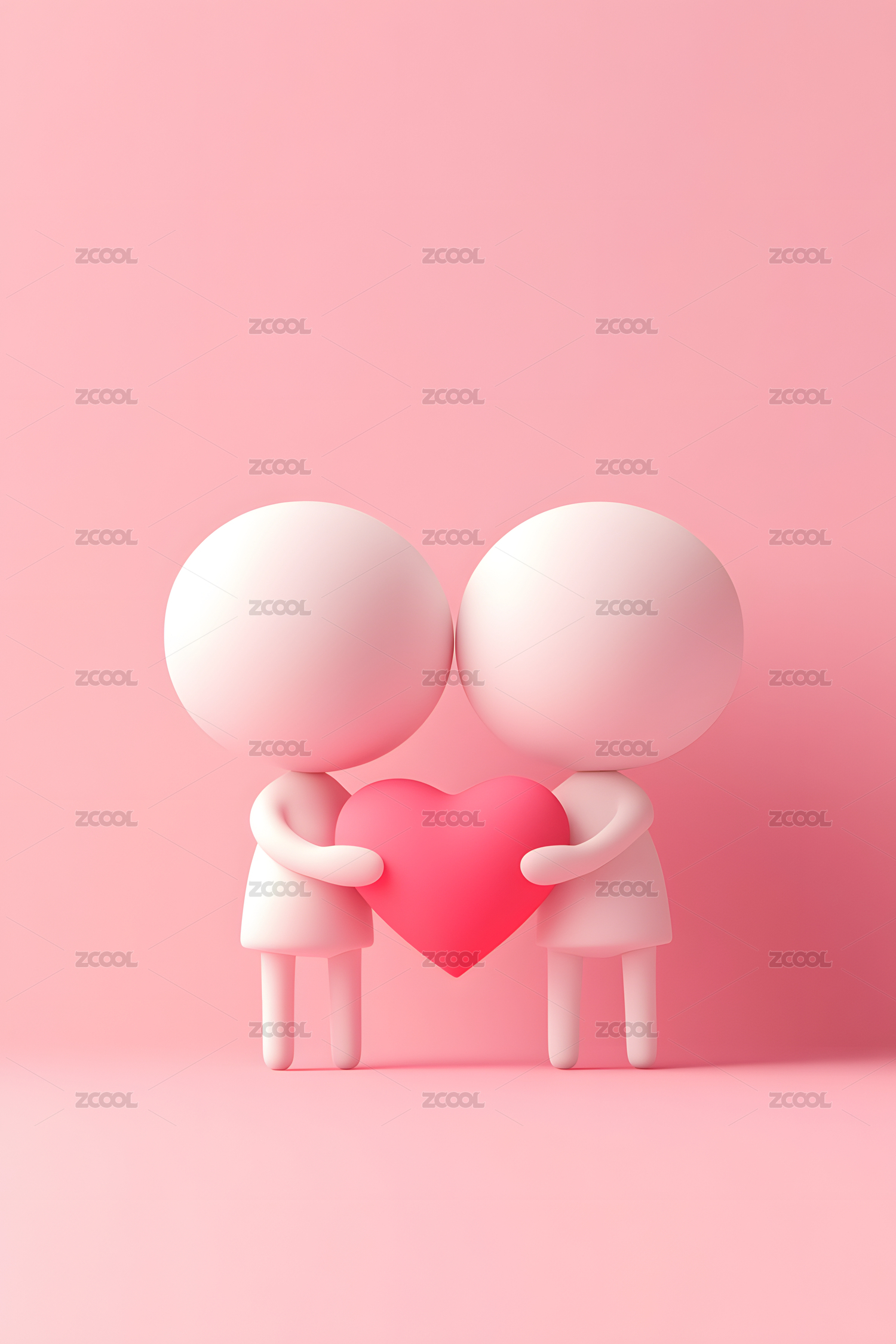 3d,爱心,立体,彩色,饱和,粉色,卡通,两个人,手捧