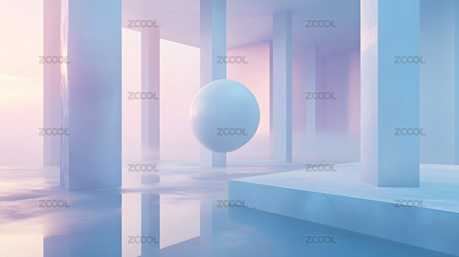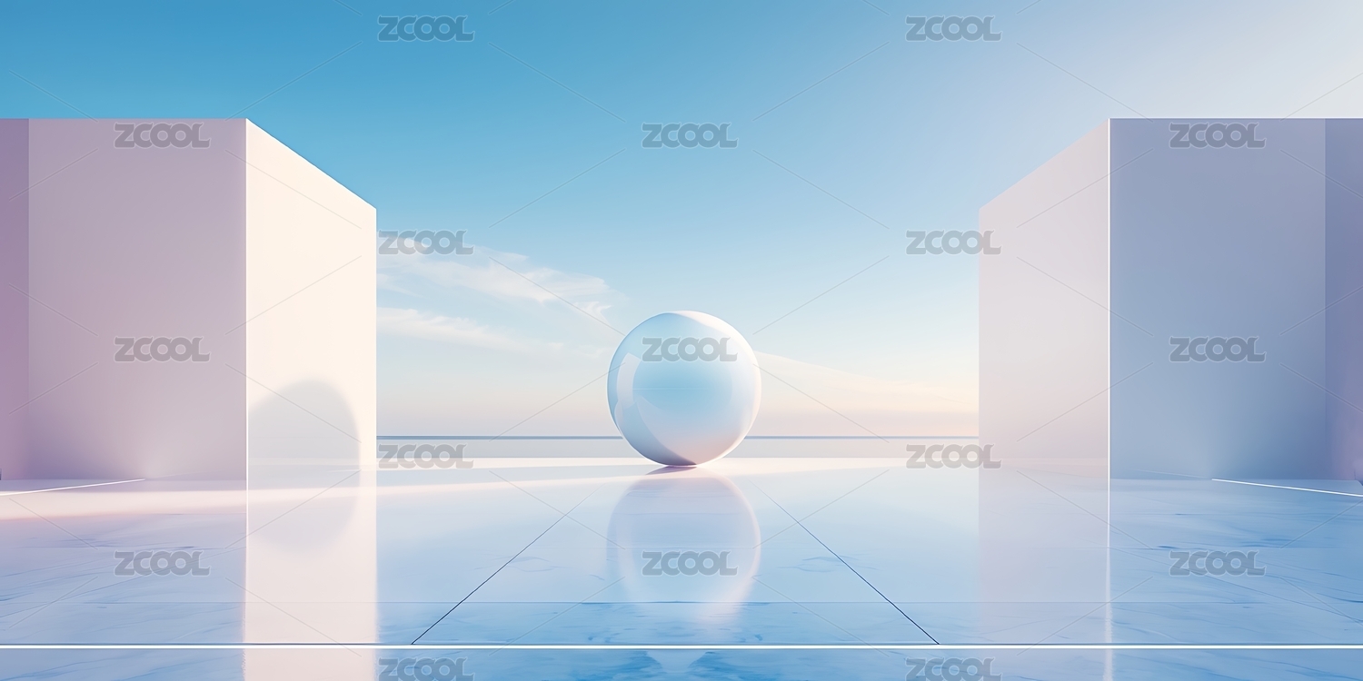 梦幻光影下的白色球体与廊柱