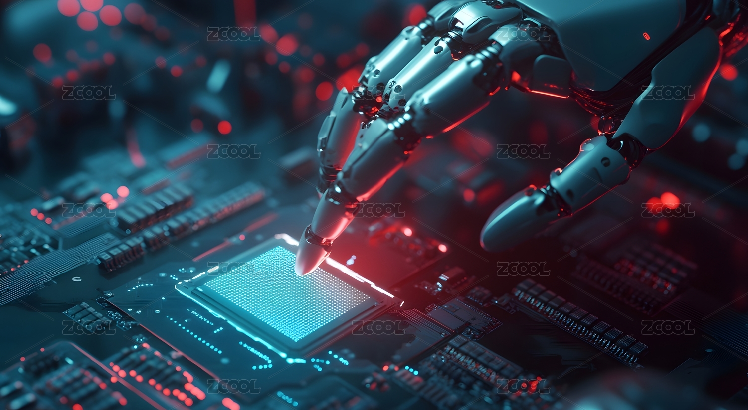 人工智能机器手触摸芯片上的电路板