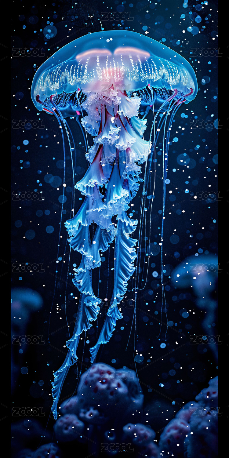 蓝色梦幻水母特写海洋生物海底世界生物背景