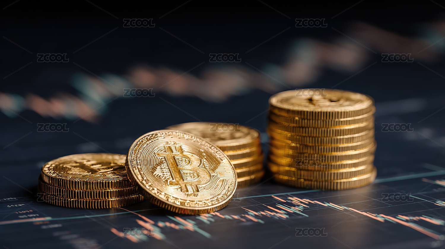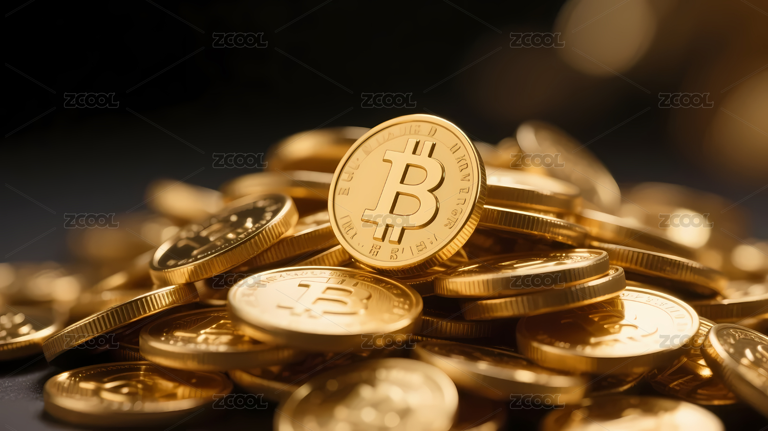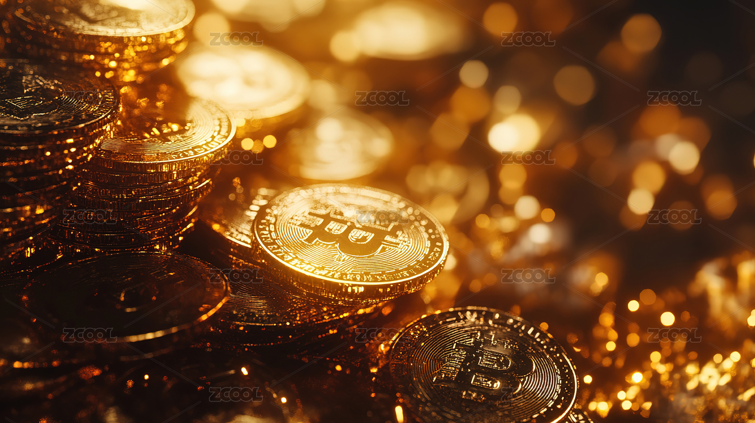 金光闪耀的比特币堆积如山