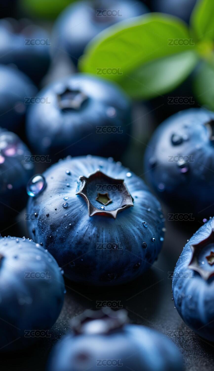 带水珠的蓝莓特写图