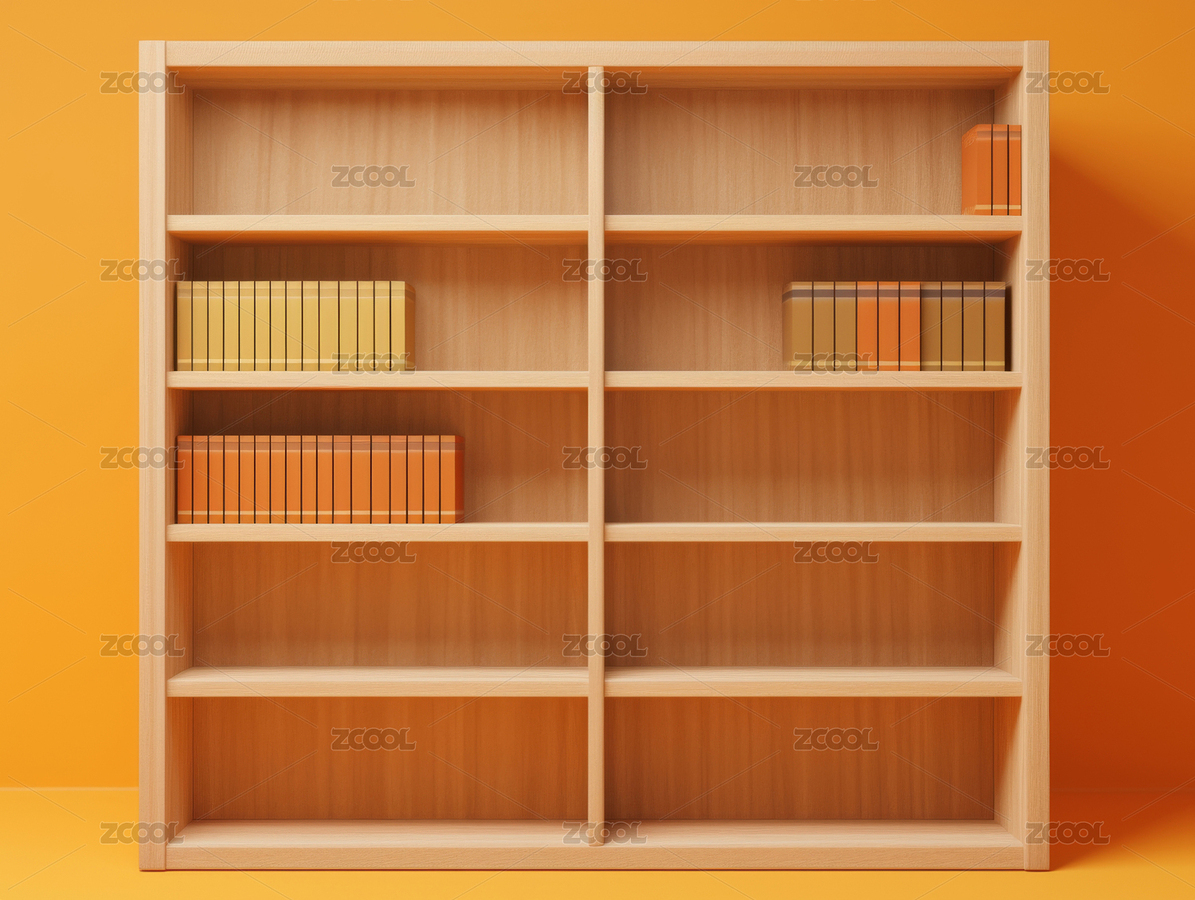书架,书籍,木制,整洁,橙色,背景,知识,学习