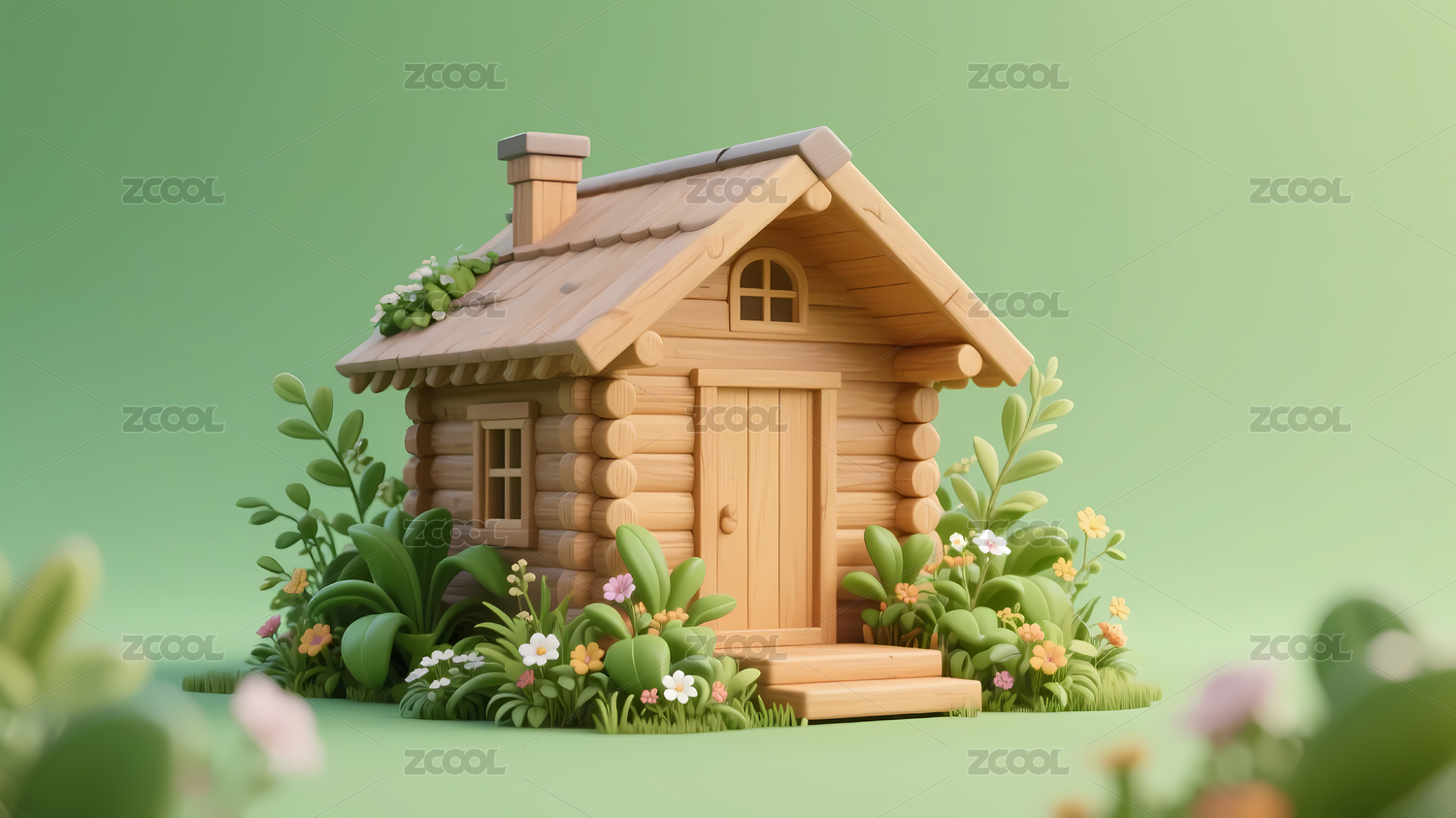 立夏节气户外房屋花草场景夏天旅行3D插画
