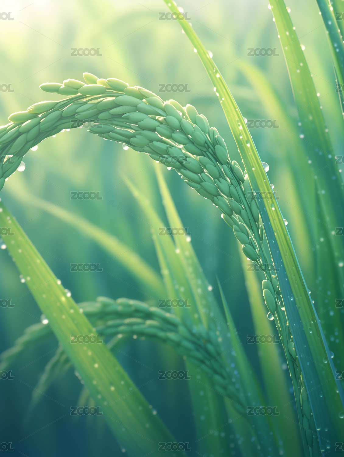 清晨生长中的水稻特写