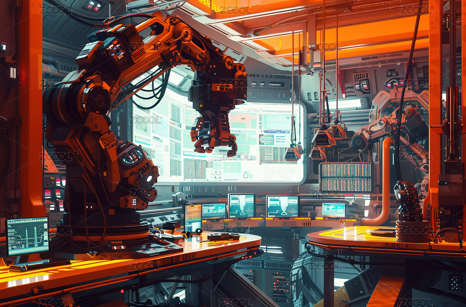 机器人,机械臂,实验室,显示屏,科技,未来,自动化,控制,面板,工业