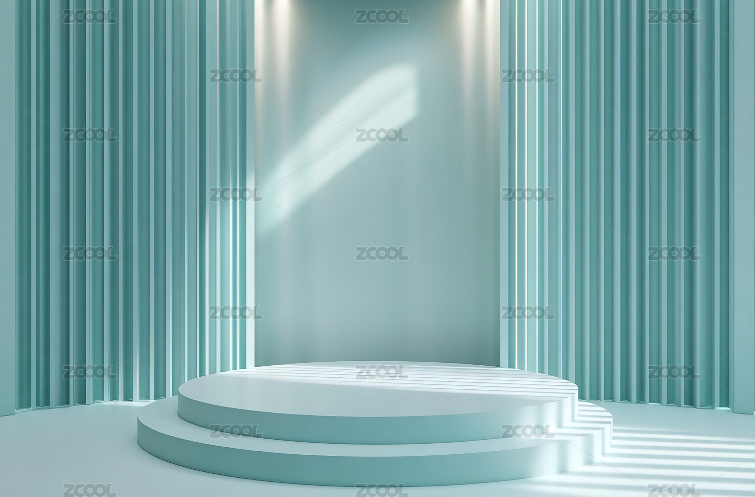 展示台,现代,简洁,灯光,背景,白色,绿色,圆形,设计,舞台