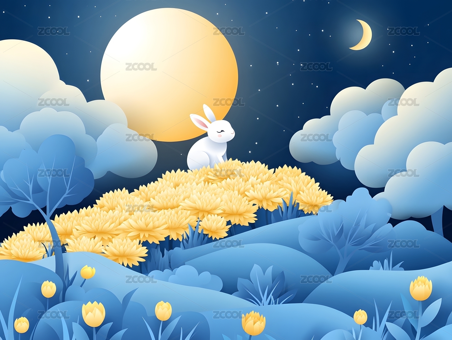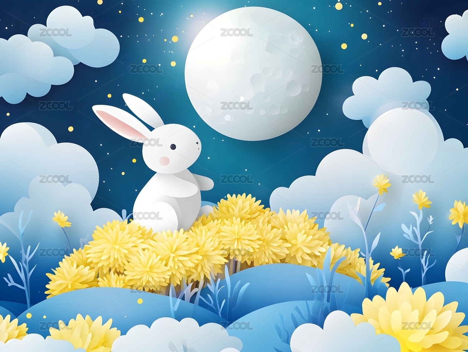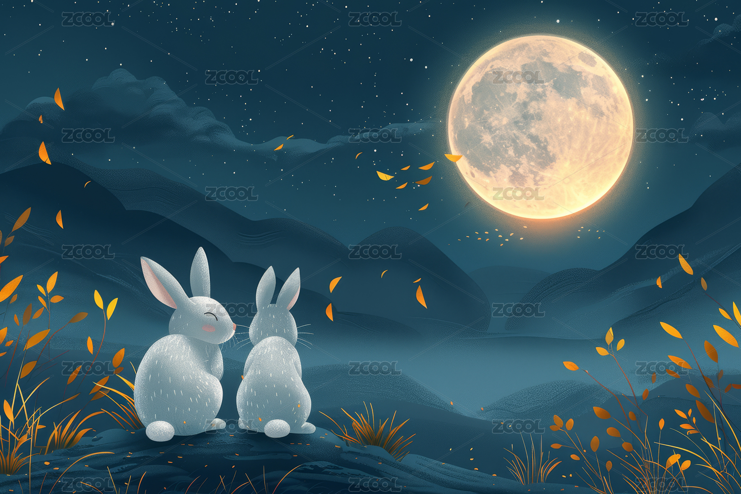 月满中秋节日玉兔愉快地赏月氛围感美景