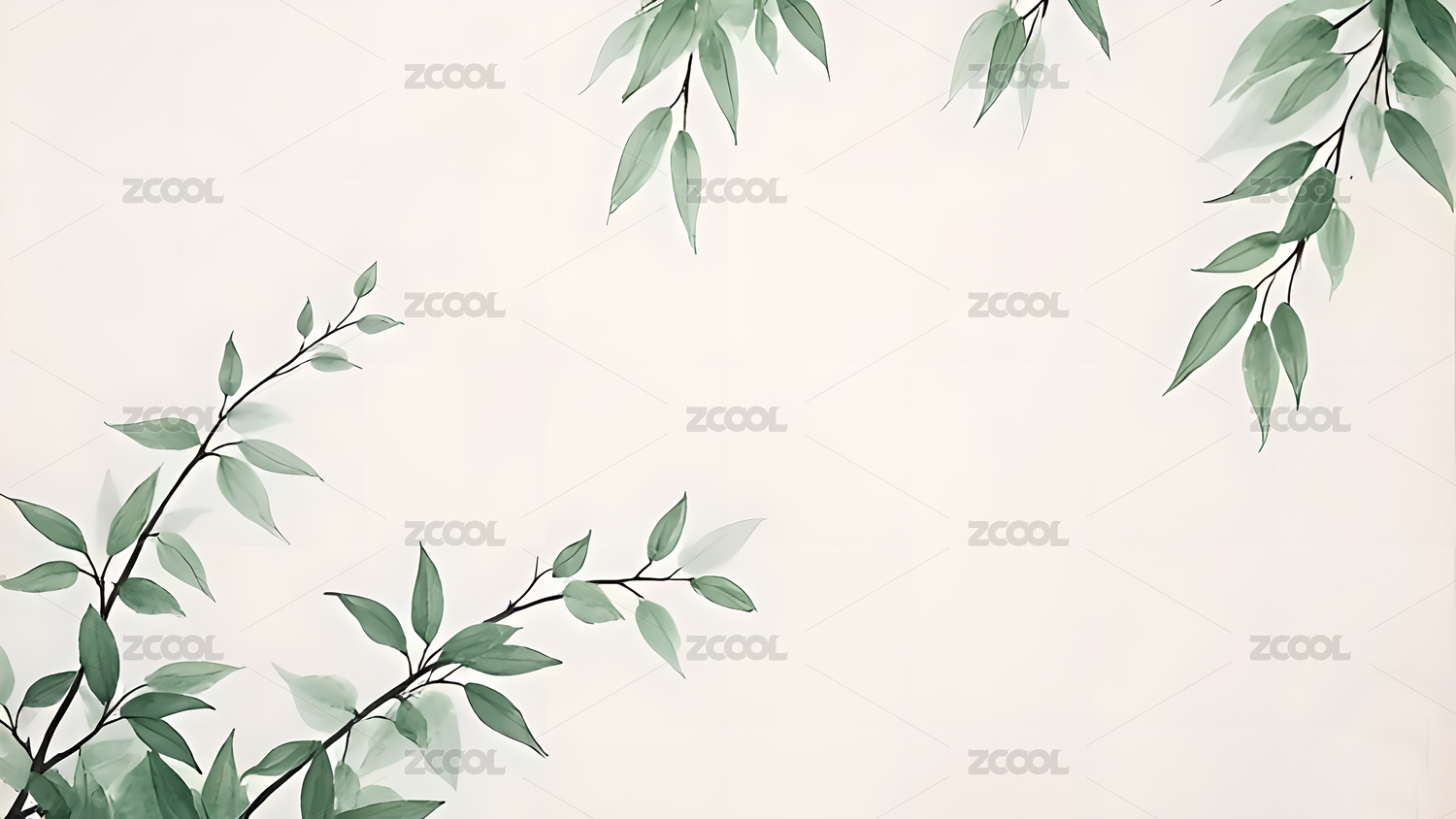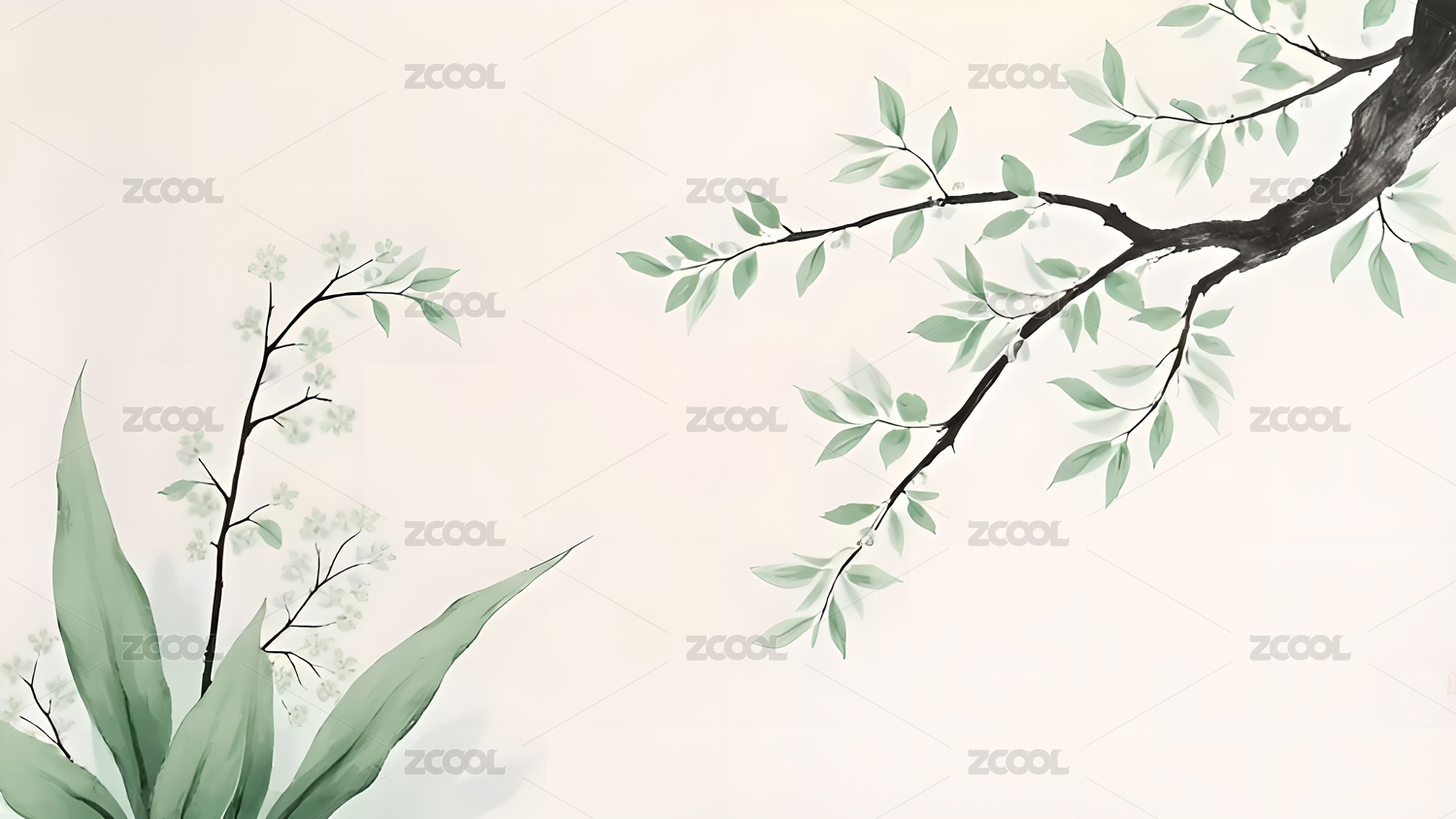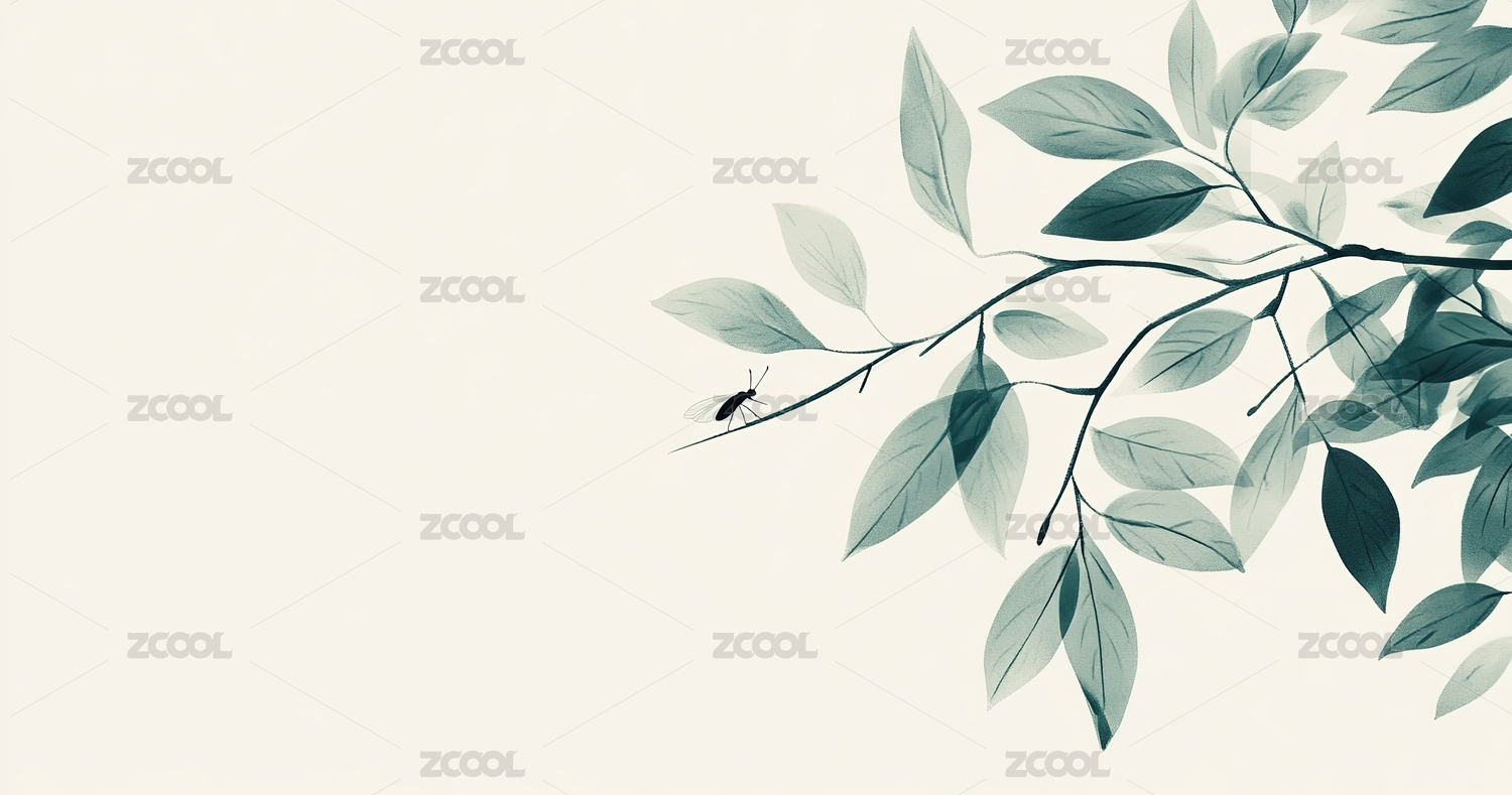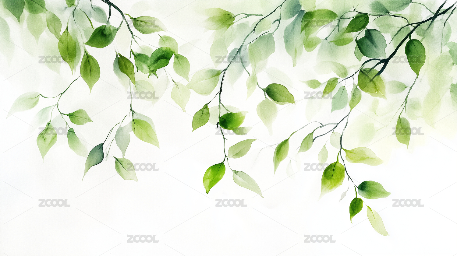 绿色枝叶的水墨画