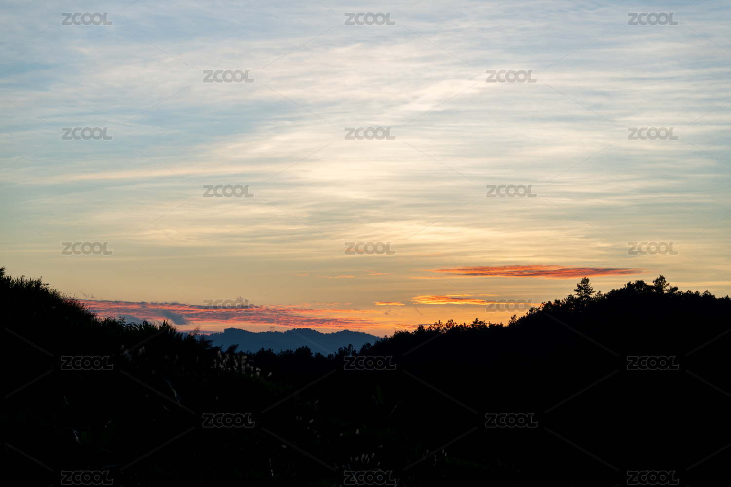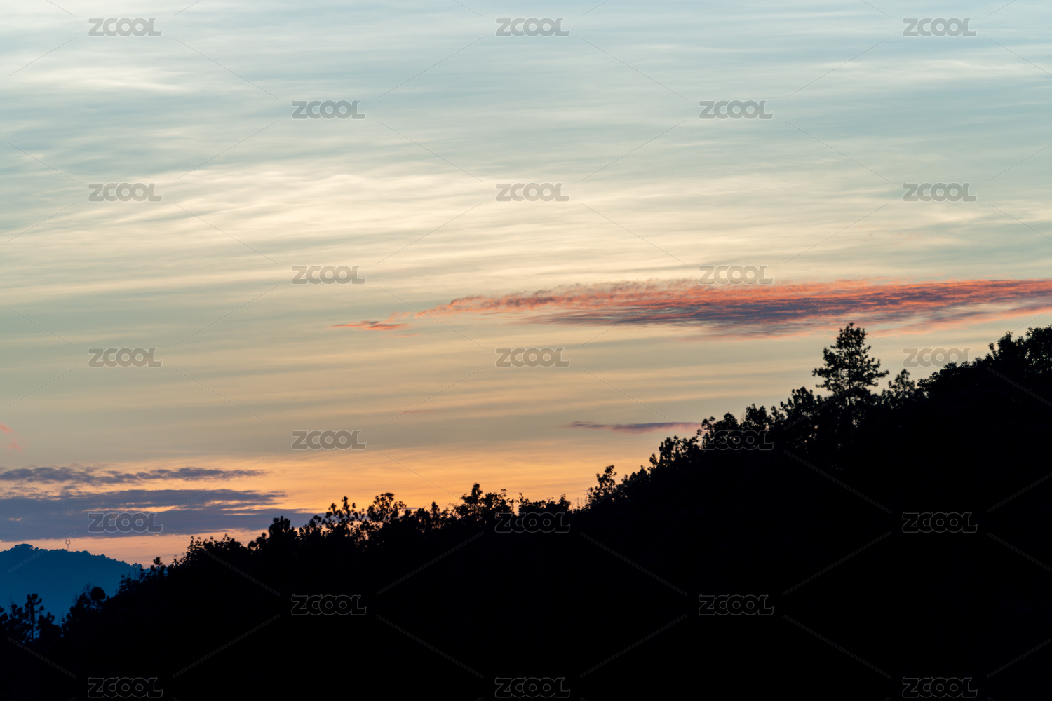 黄昏时分天边的云彩与远山