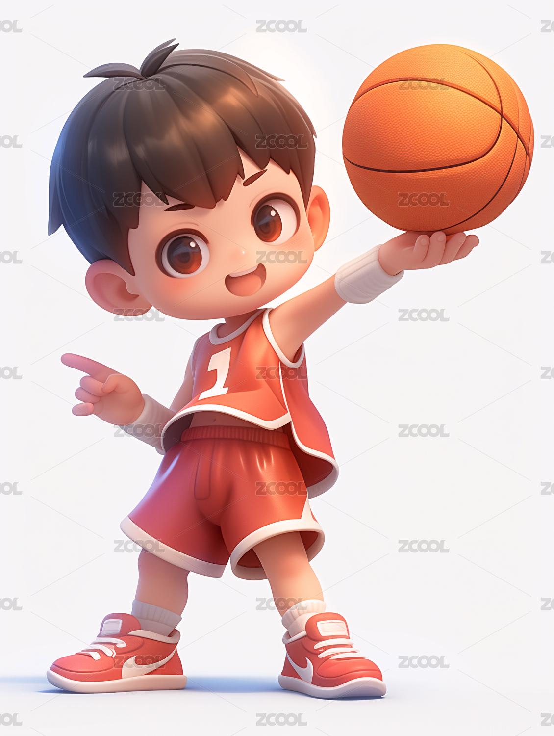 3d卡通可爱男孩打篮球