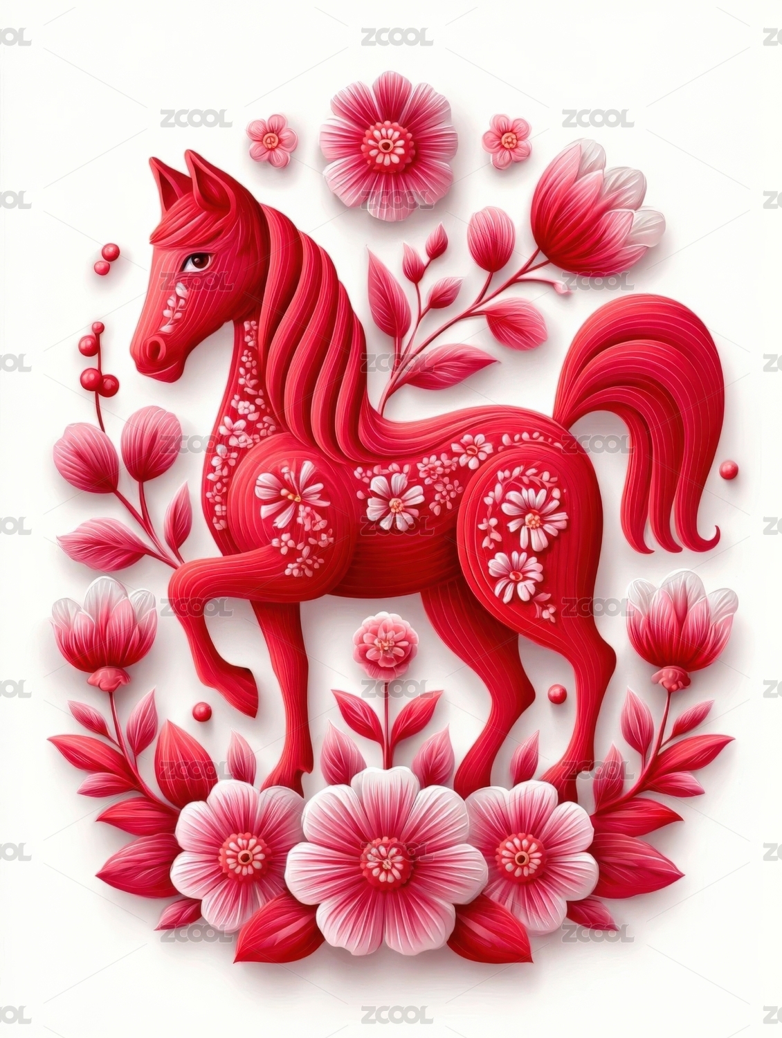 剪纸,艺术,马,红色,花卉,图案,传统,文化,装饰,几何