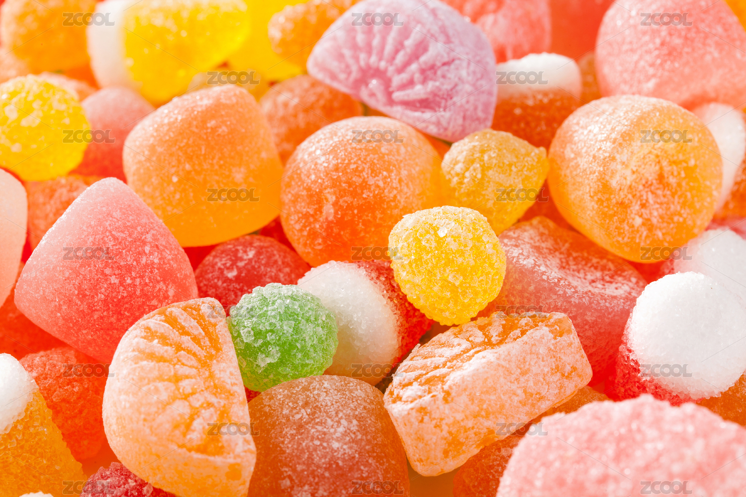 多种多样的彩色果汁软糖及硬质水果糖