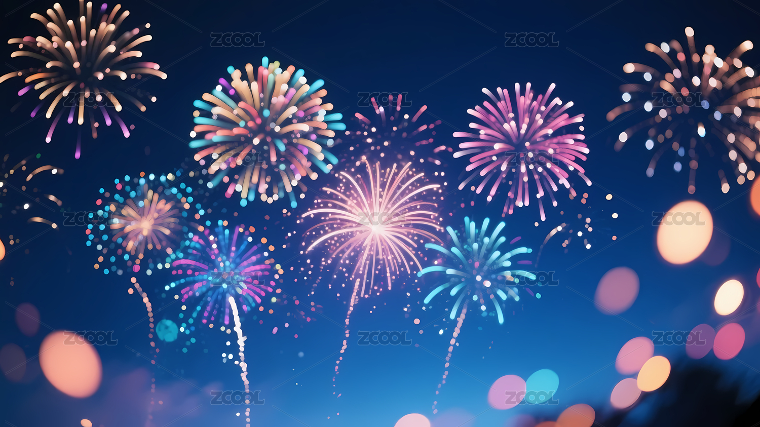 烟花多彩夜空绽放场景