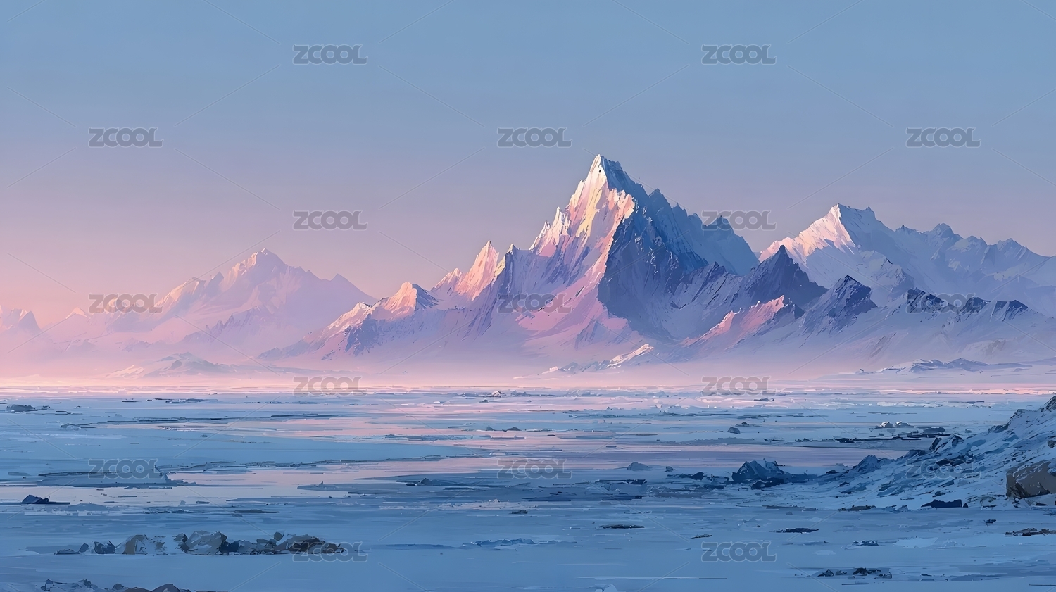 雪山, 山脉, 宁静, 梦幻, 唯美, 冷色调, 紫色, 平静, 云彩, 远山