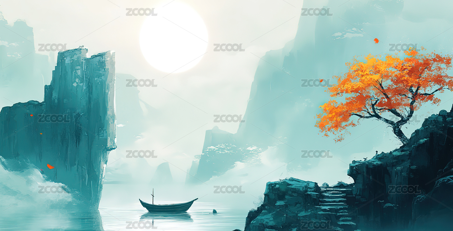 国风自然山水水墨画