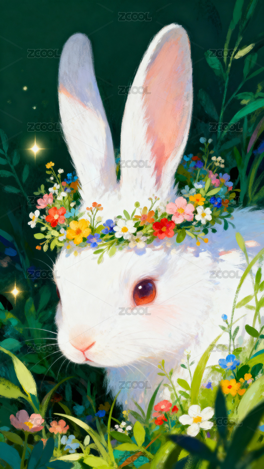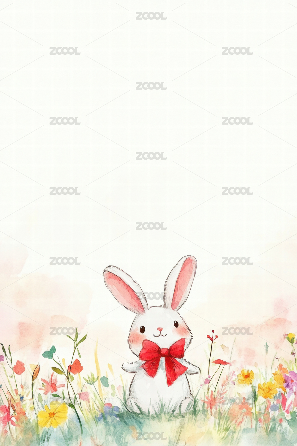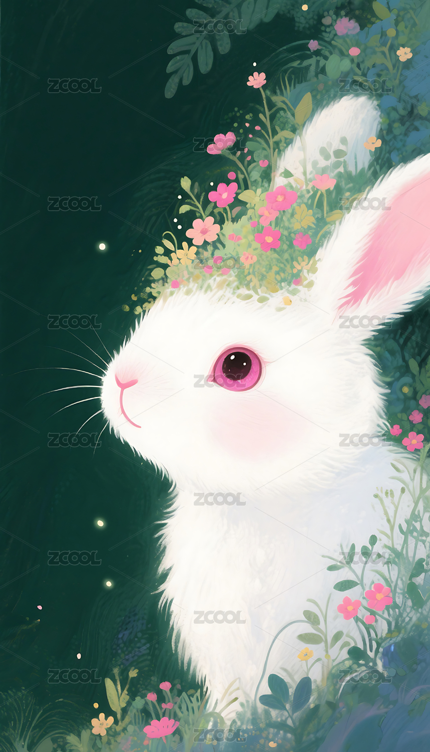 线条,插画,兔子,简笔画,动物,萌宠,花,花海,春天,立春