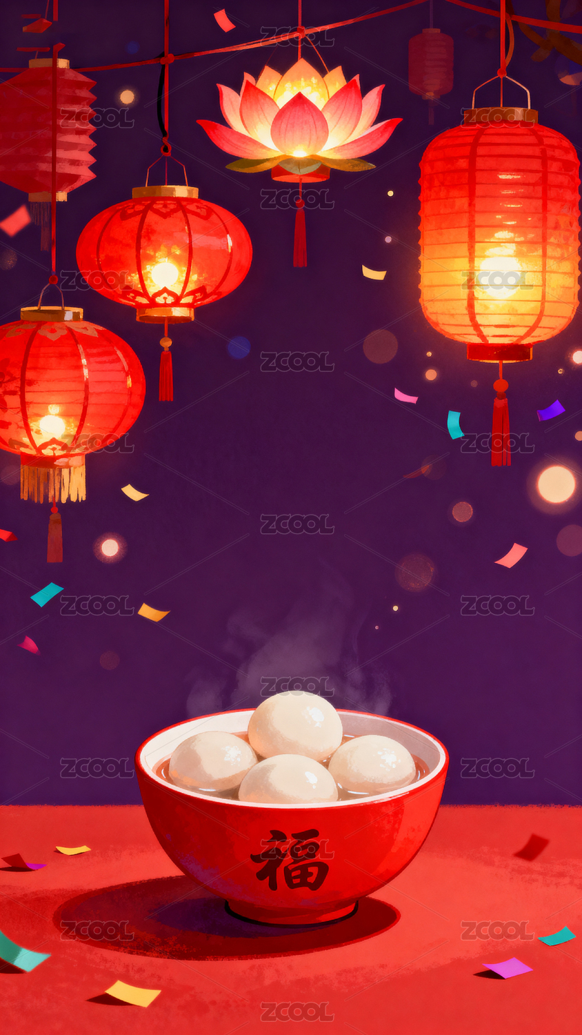元宵节,海报,汤圆,新年,团年,过节,春节,2025,插画,复古