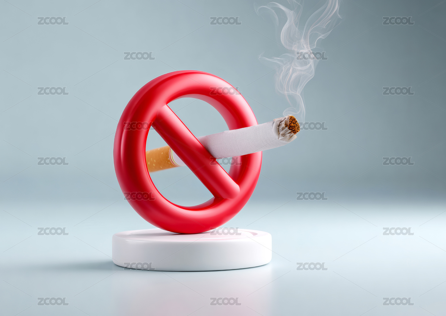 蓝色香烟交叉禁烟标志3D渲染图