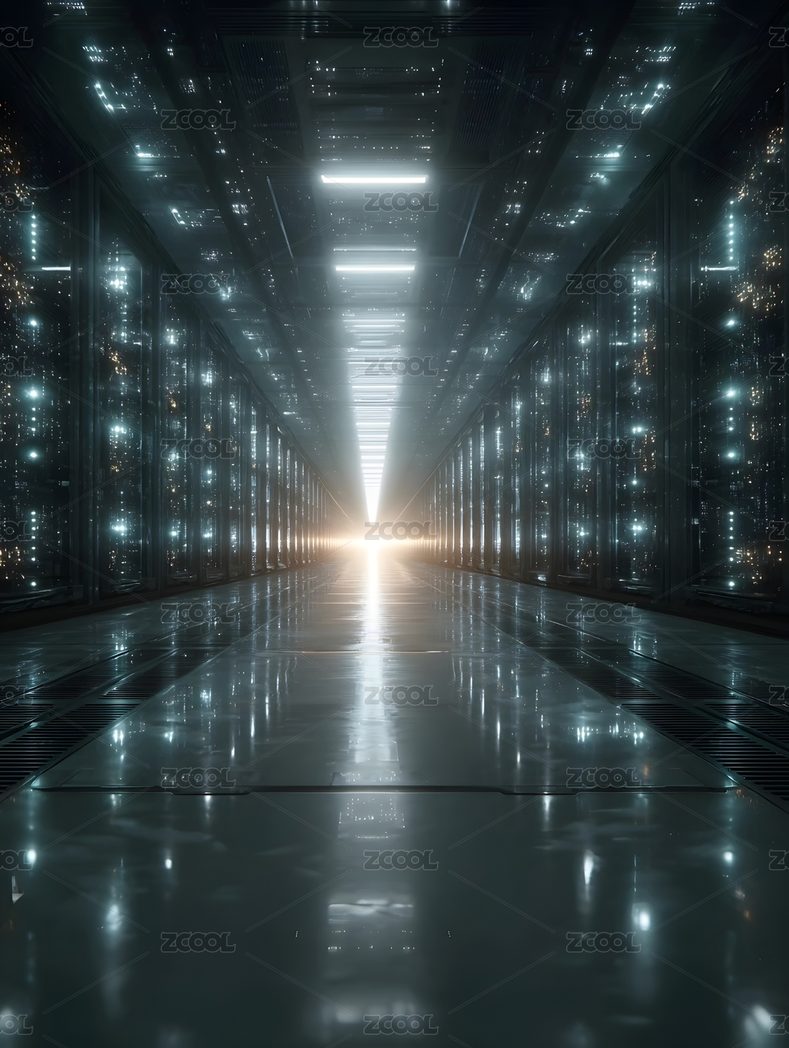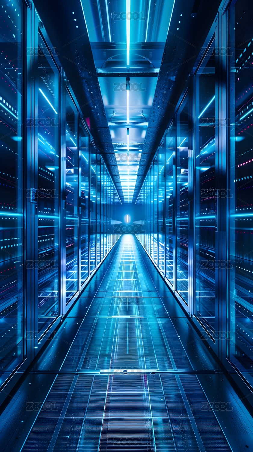 科技感十足的服务器机房走廊