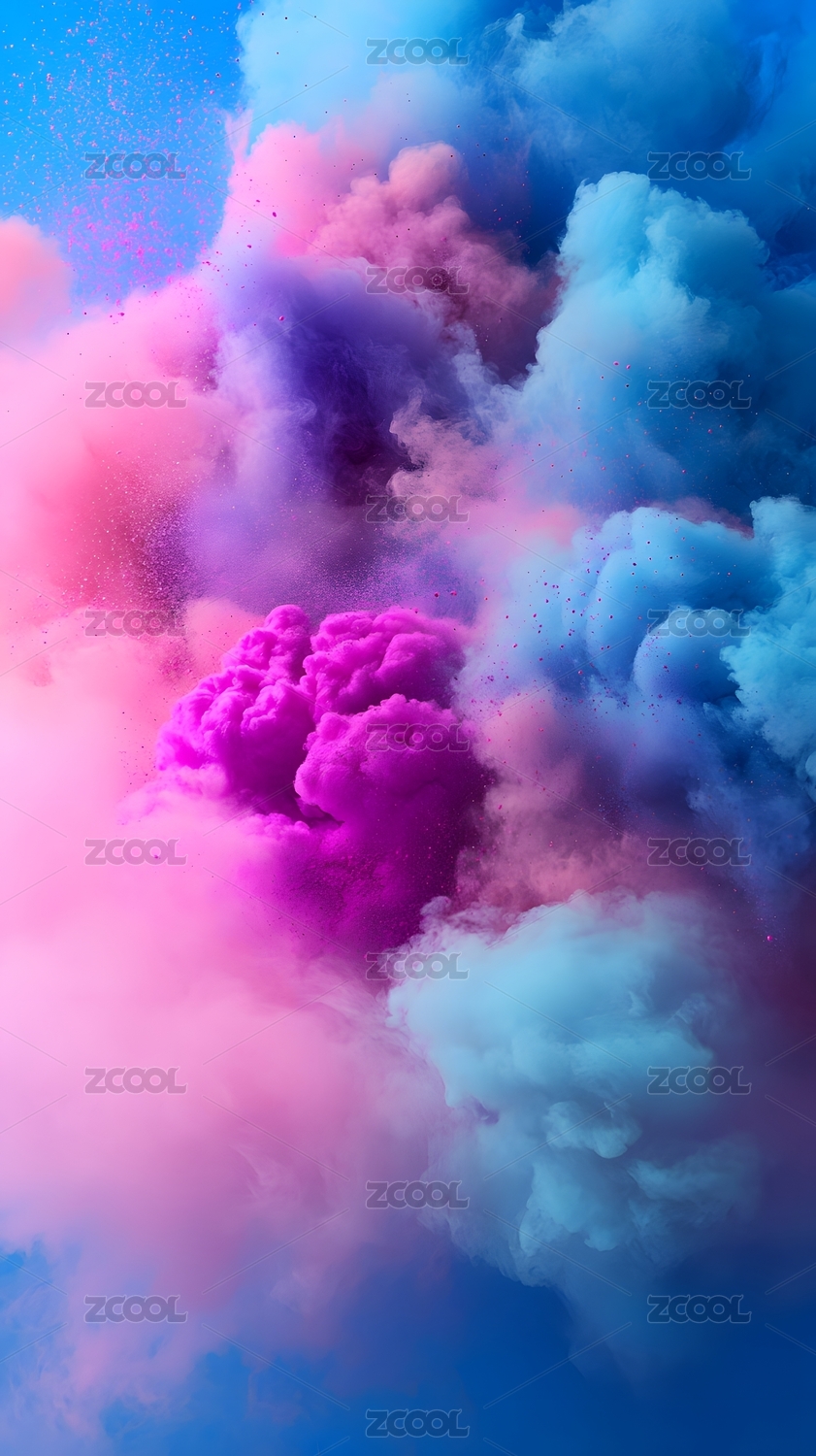 抽象彩色粉尘在纯色背景下爆炸粉尘喷溅背景
