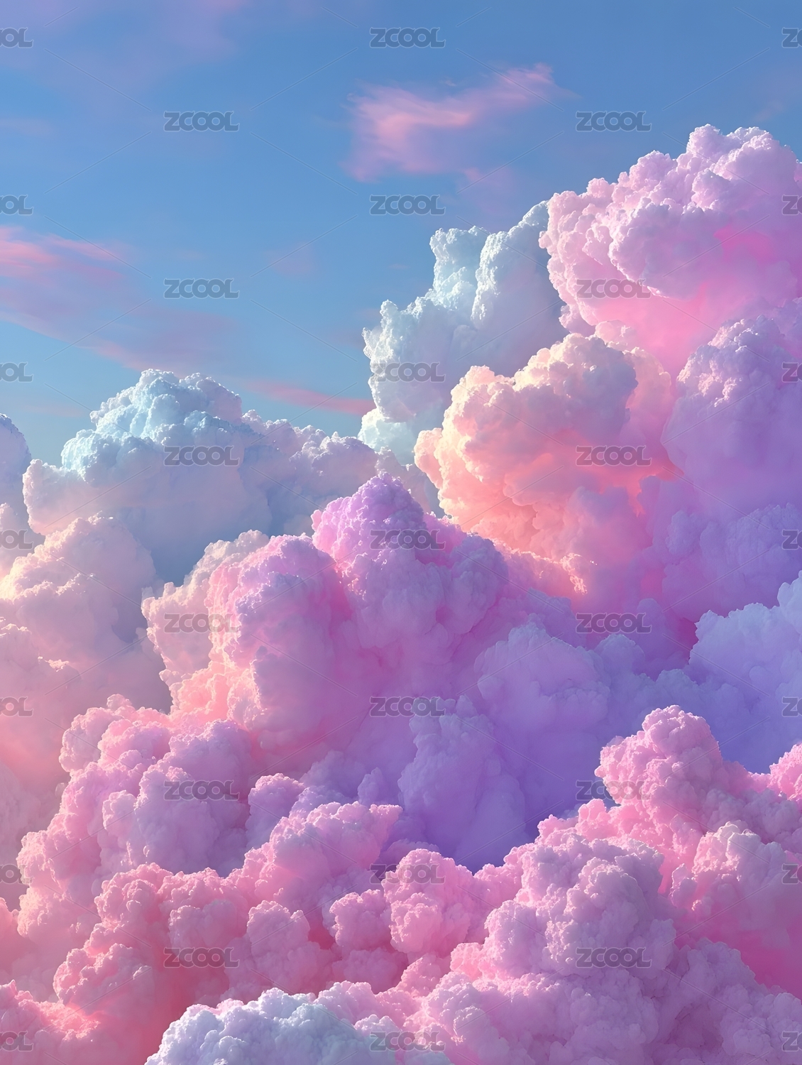 三维立体,3D,插画,背景,壁纸,天空,梦幻,唯美,粉色,云朵