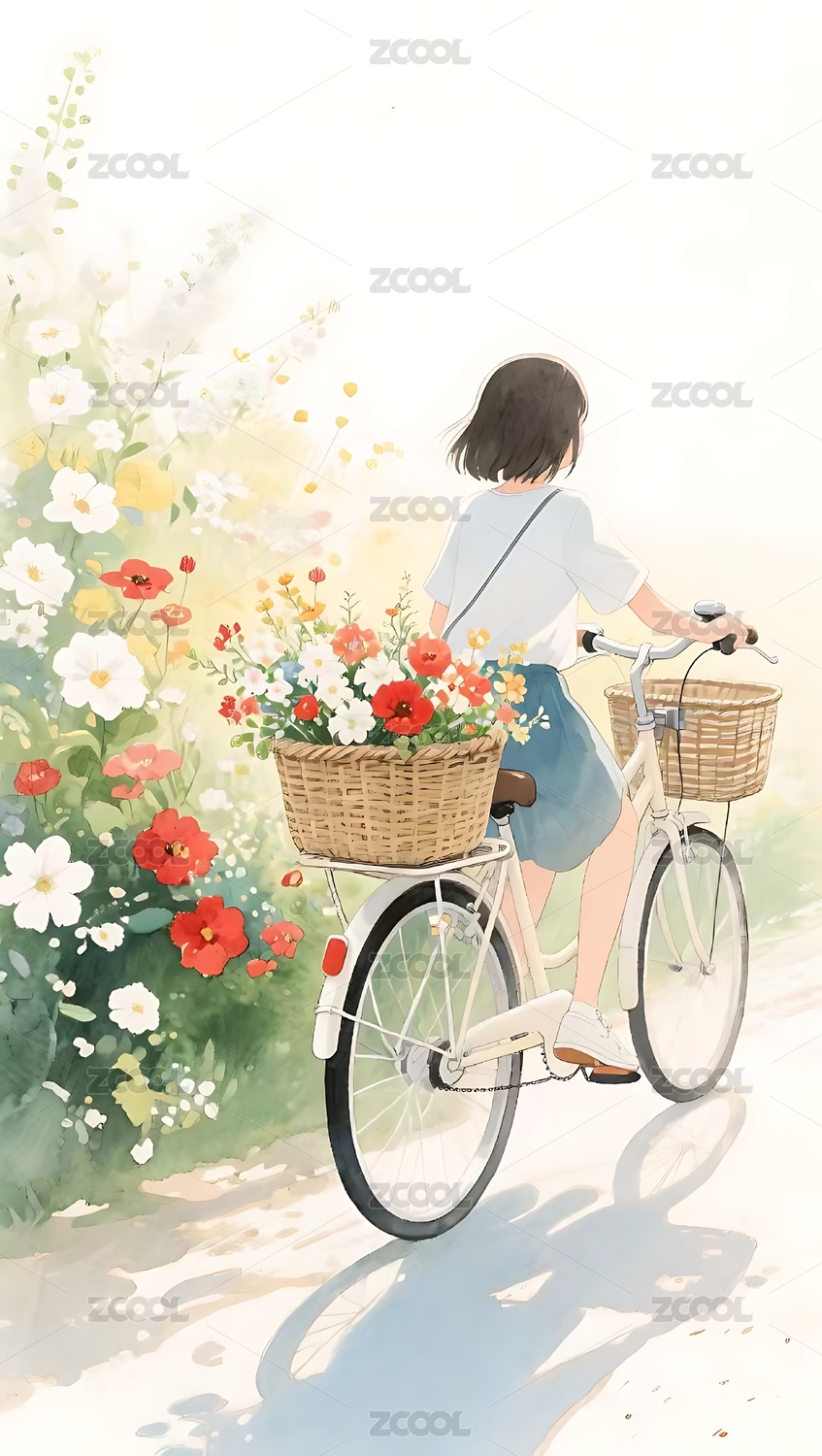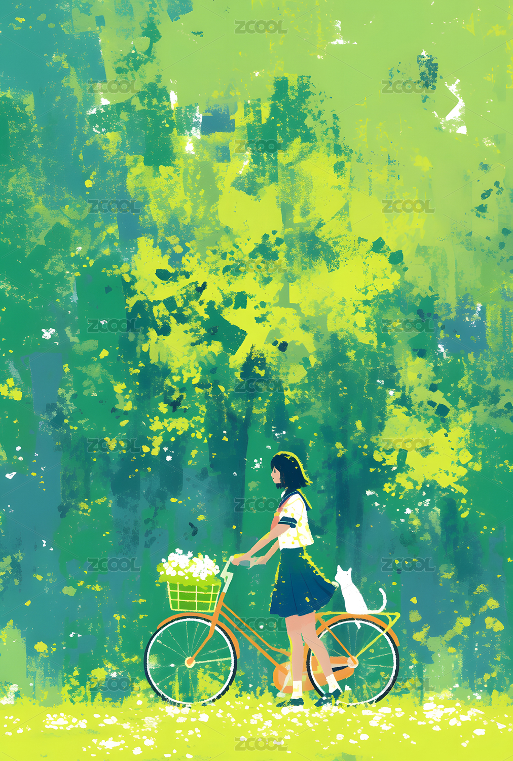 艺术,自然,绘画,水彩画,树木,女孩,风景,浪漫,快乐,写实
