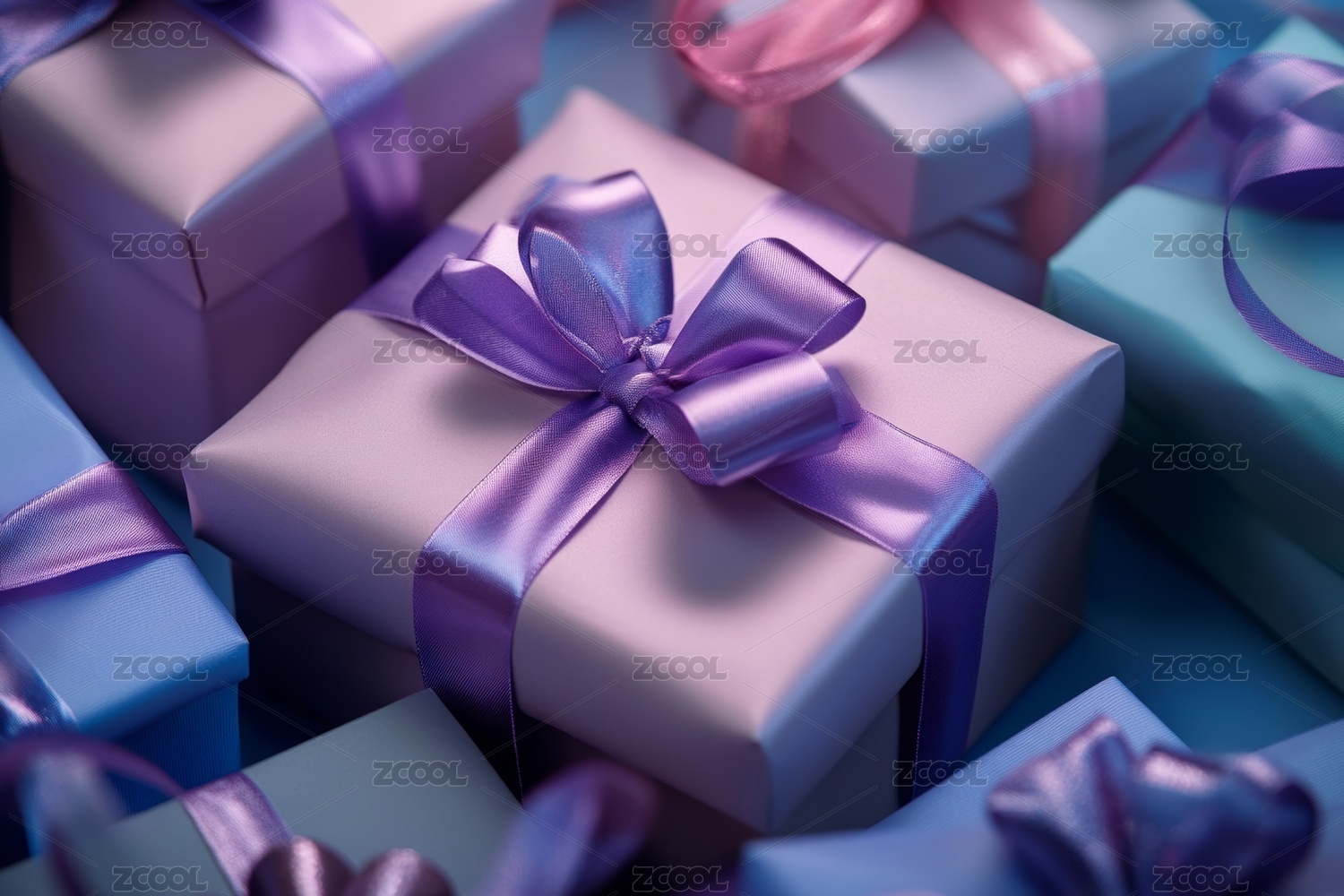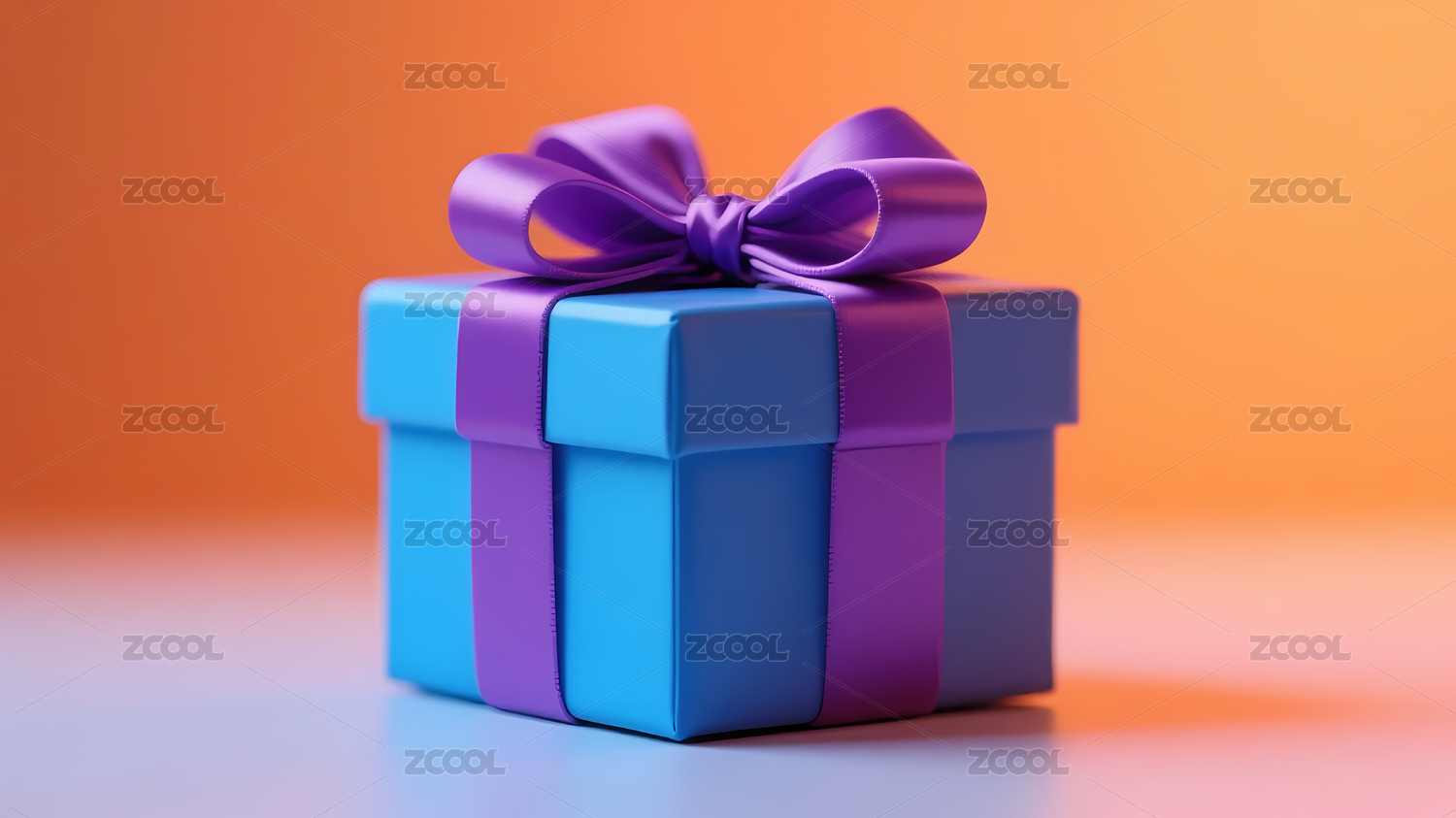 蓝色礼物盒与紫色蝴蝶结