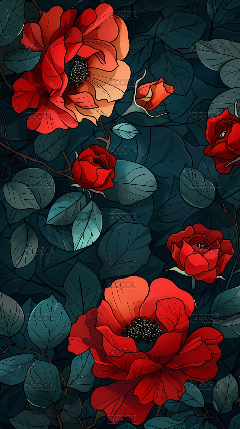 复古复杂玫瑰纹理图案插画海报背景