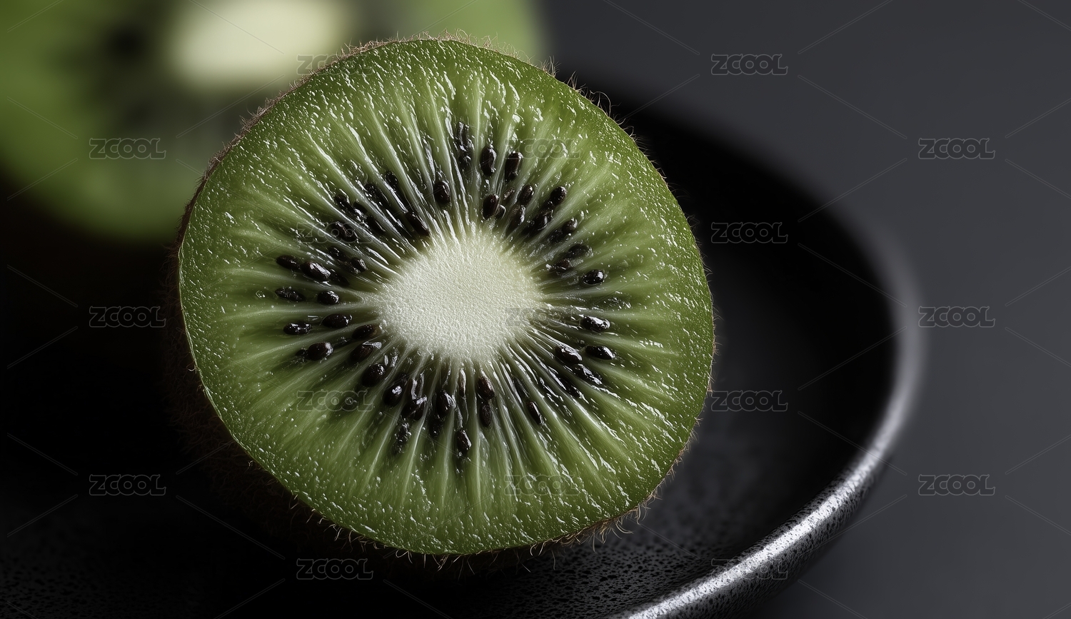 猕猴桃,切片,特写,绿色,果肉,种子,背景模糊,新鲜,健康,营养
