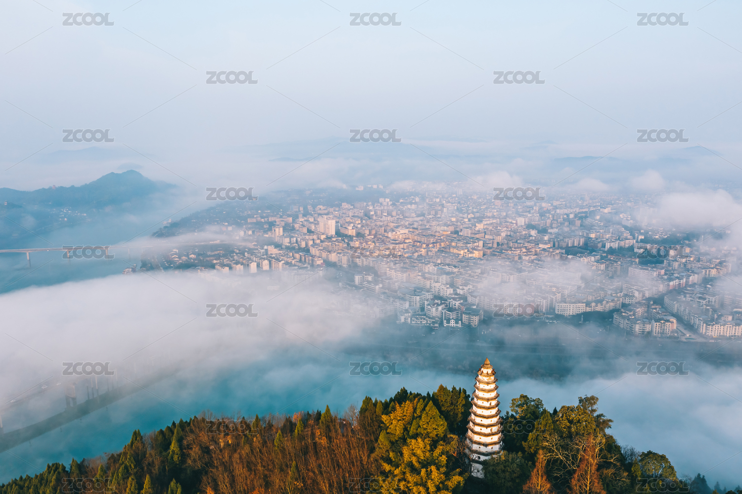 阆中古城,航拍,云海,清晨,全景,四川,南充
