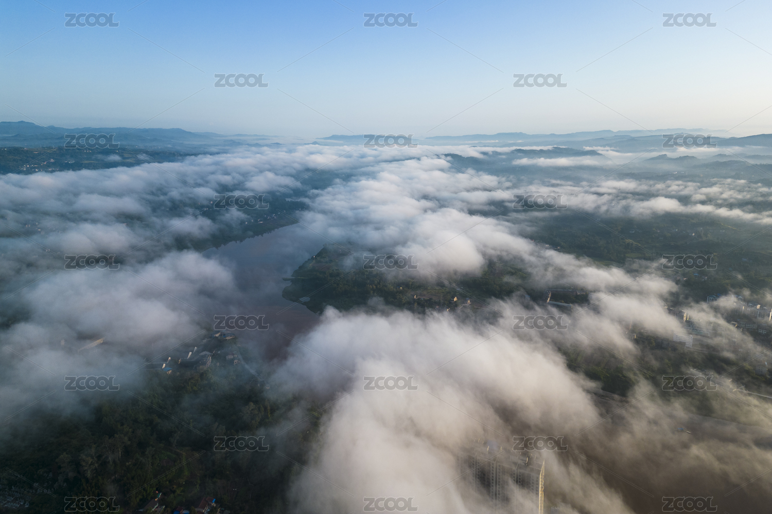 重庆市合川区清晨的平流雾航拍