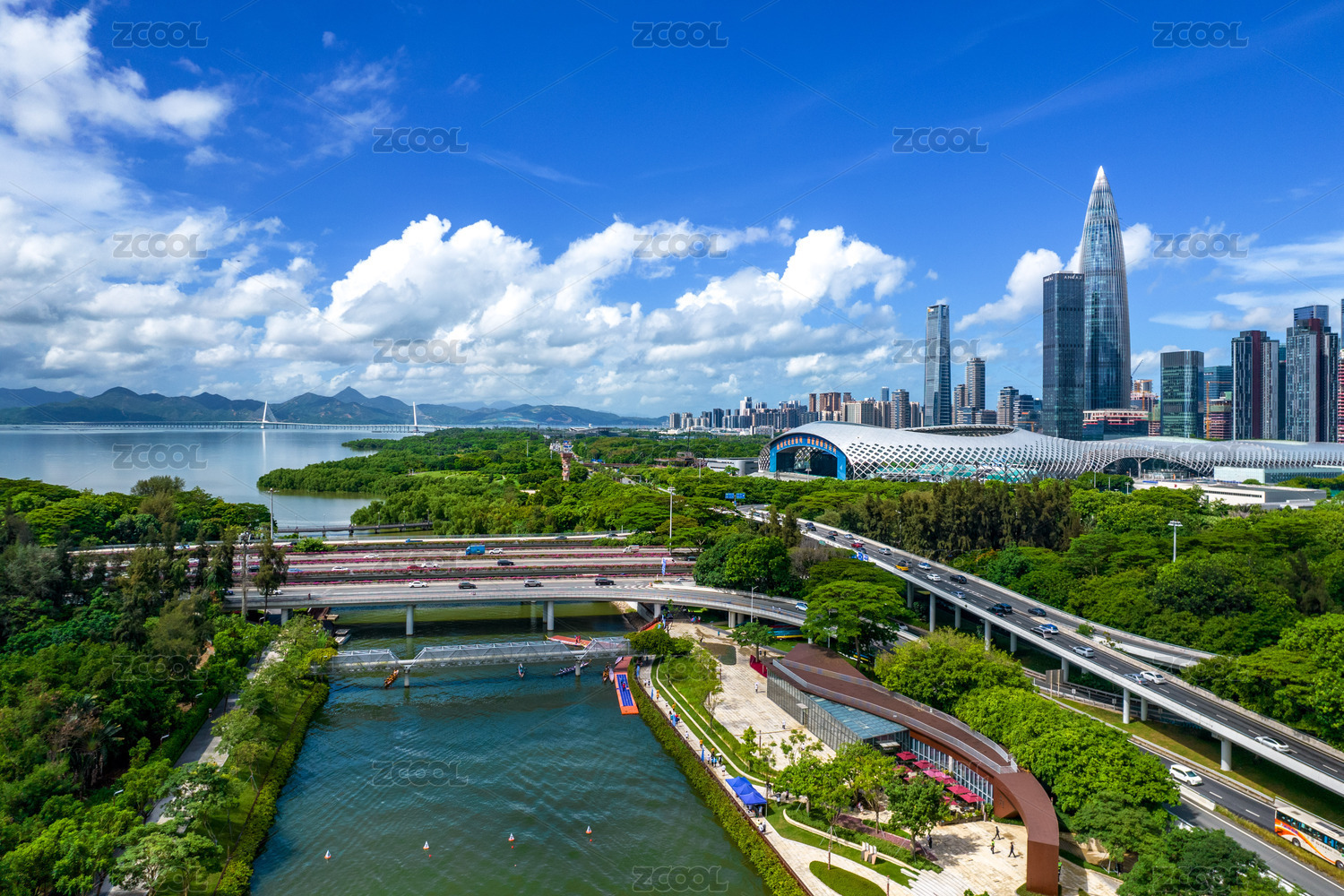 深圳南山区深圳湾一号华润大厦人才公园航拍