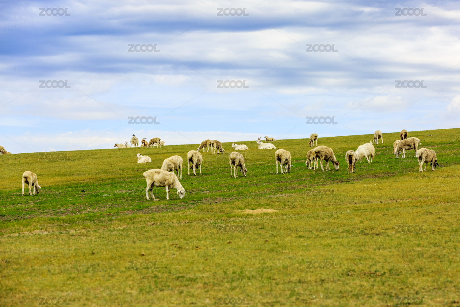 夏季内蒙古草原上自由的羊群