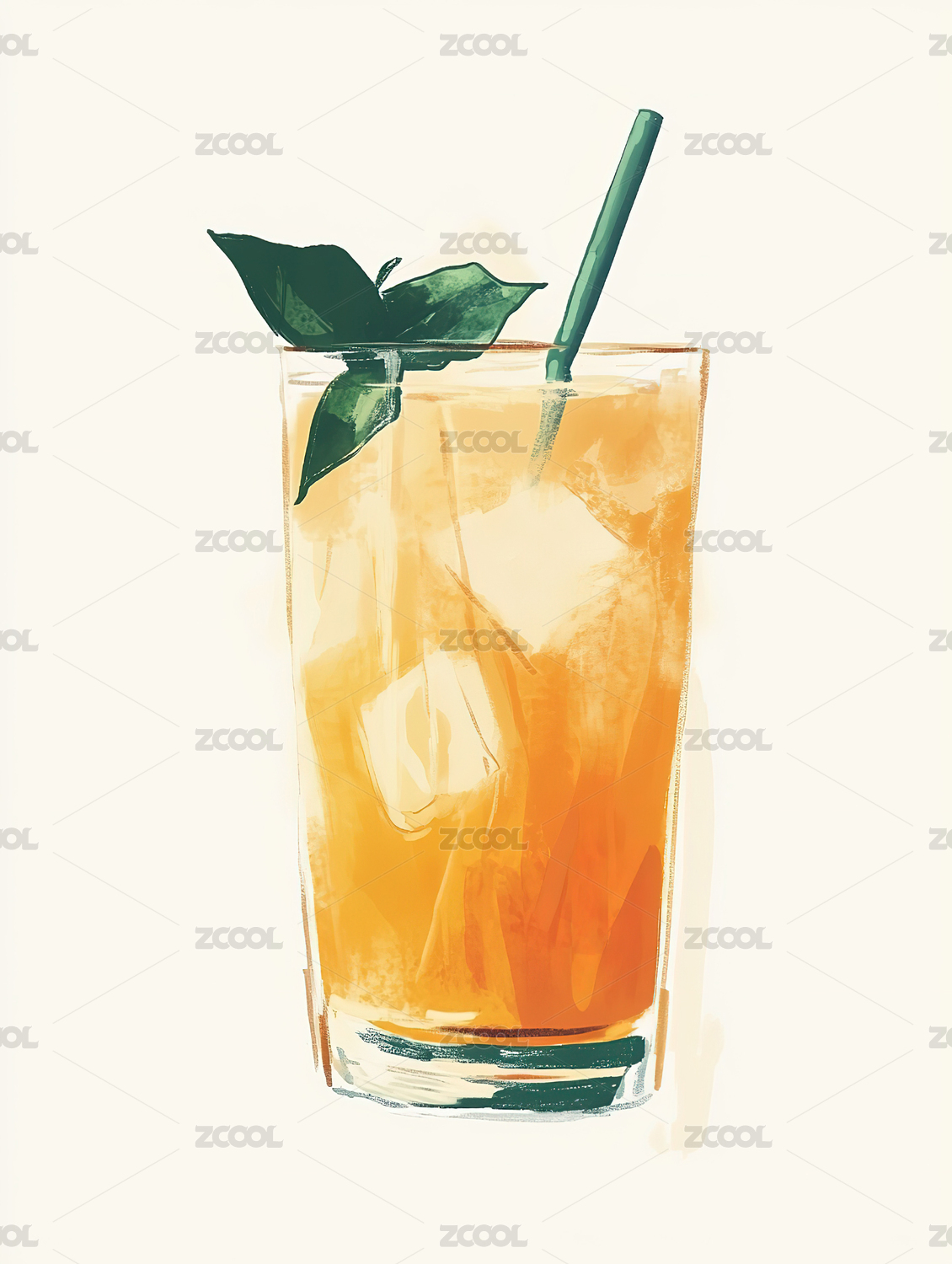 插画,艺术,美食,清凉,夏日,饮品,餐饮,冰块,青柠,果汁