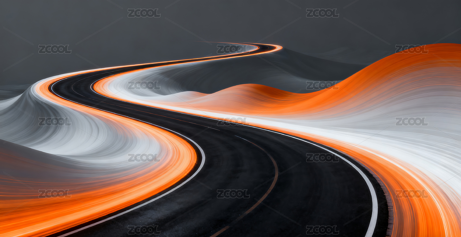 现代,科技,抽象,未来,曲线,蓝色,黄色,创新,光效,道路