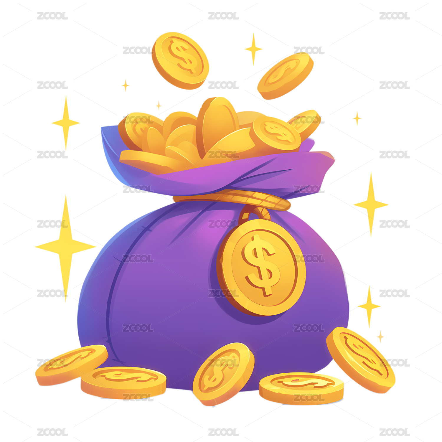 荷包金币插画