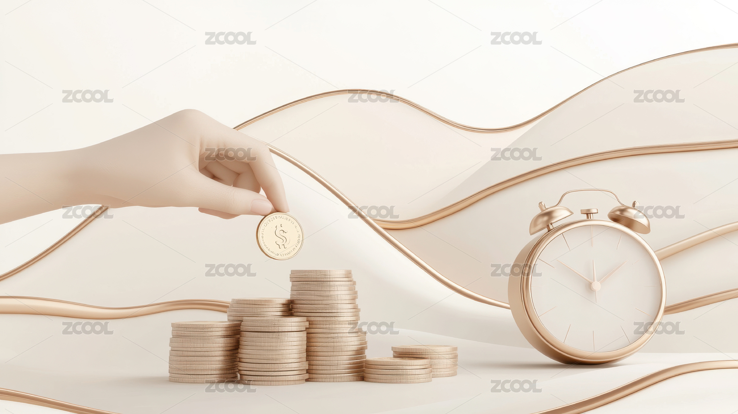 金色闹钟与硬币堆
