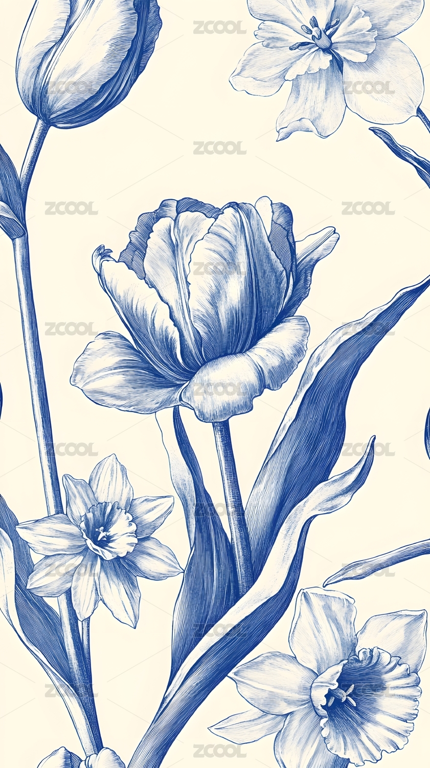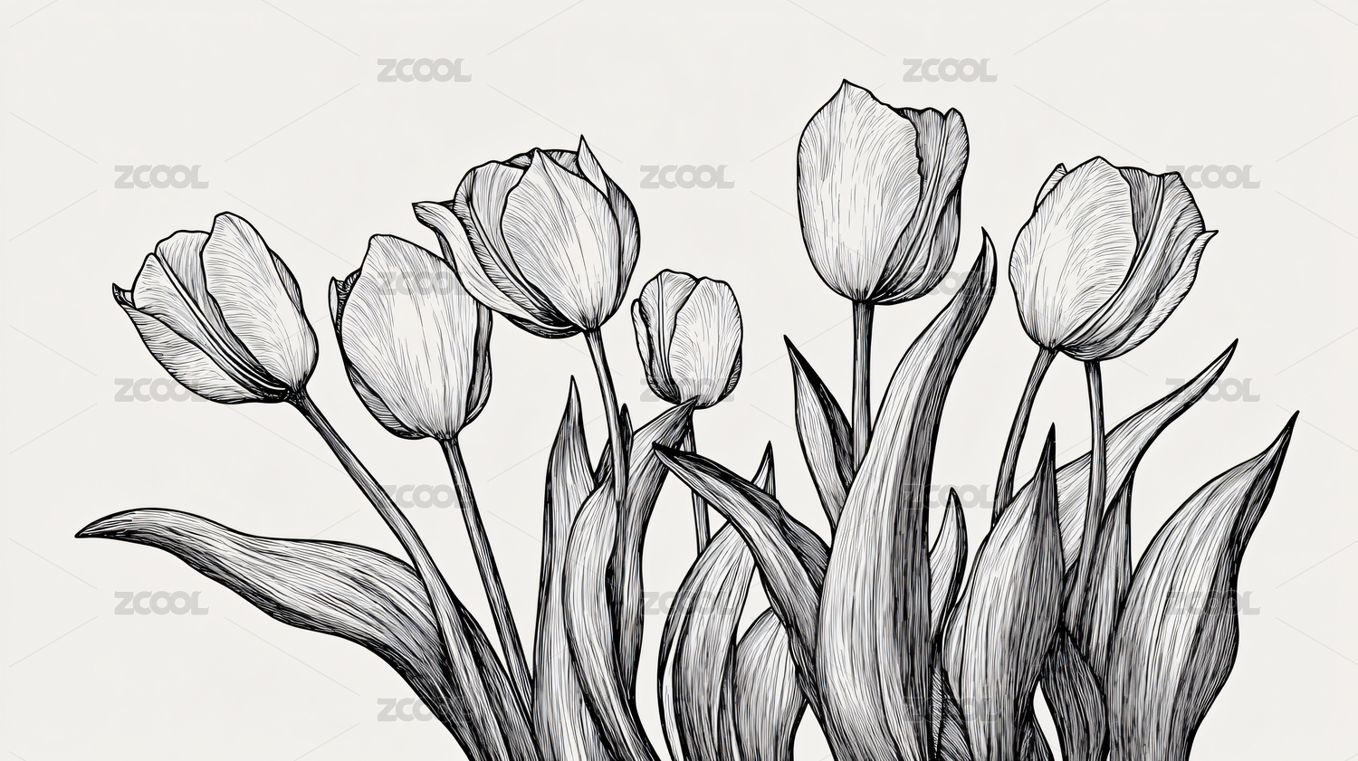 郁金香线稿插画背景