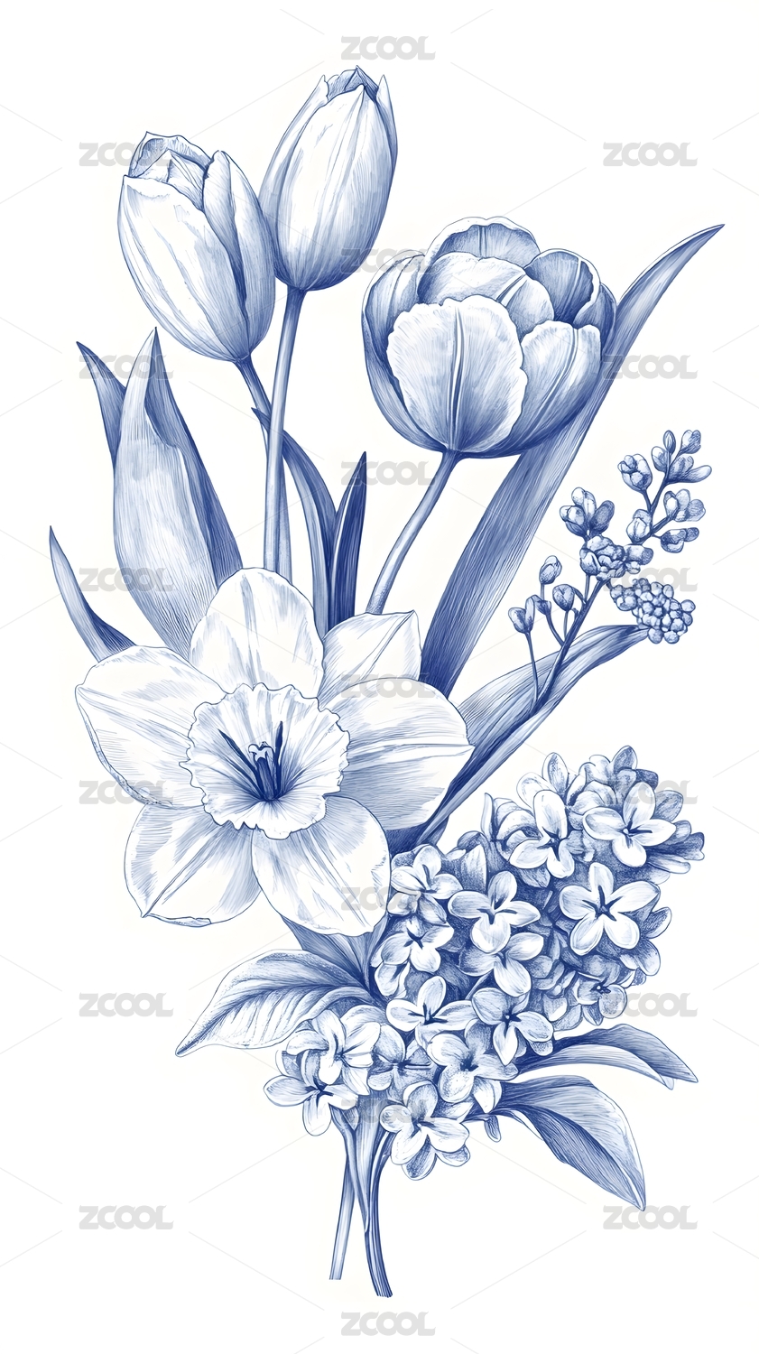 郁金香素描线稿