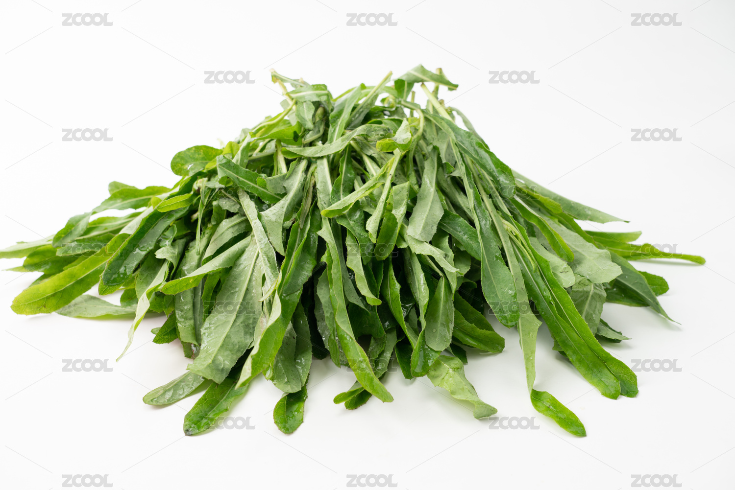 白色背景上的一篮子绿色青菜蔬菜豌豆尖